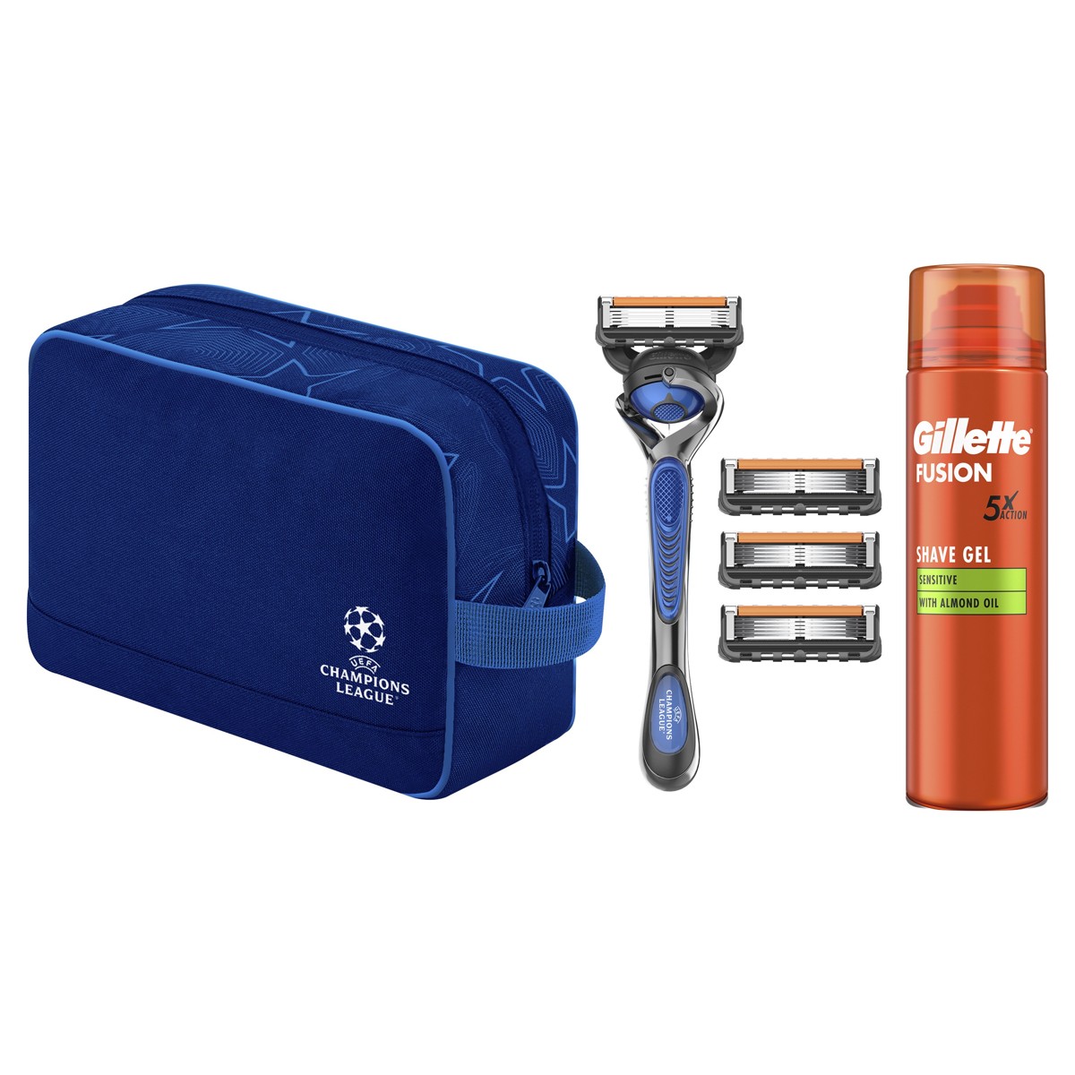 Set uključuje 1 Gillette ProGlide brijač, 4 zamjenske britvice, 200 ml gela za brijanje i praktičnu putnu torbicu