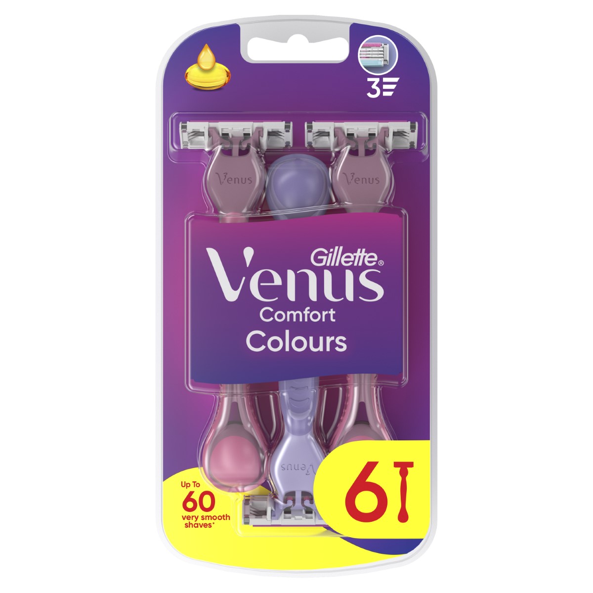 Jednokratne ženske britvice Gillette Venus 3 Colors omogućavaju temeljito brijanje po nevjerojatnoj cijeni. Ove britvice dostupne su s drškama u različitim bojama uz koje brijanje postaje zabavan i šaren doživljaj. Imaju pokretljivu glavu s tri oštrice za područja koja je teže obrijati i lubrikantnu trakicu za poboljšano klizanje oštrica. Uživajte u temeljitom i ugodnijem brijanju (u odnosu na Venus Simply 2).