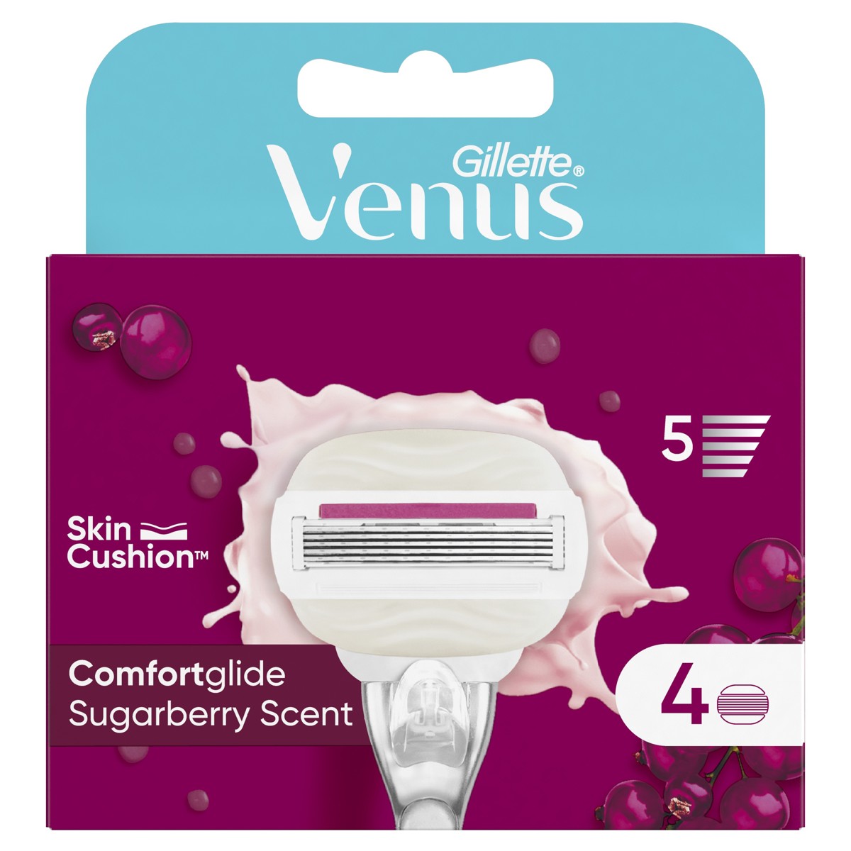 Oštrice Venusovih brijača i britvica za žene dizajnirane su upravo za žensko tijelo. Brijač za žene Venus Comfortglide Sugarberry plus Olay ima 5 oštrica za glatko, temeljito brijanje s dugotrajnim rezultatima. Zamjenske britvice imaju ugrađene vlažne trakice Olay koje otpuštaju maslac za tijelo s blagim mirisom slatkih bobica kako bi oštrice ugodnije klizale po koži. S pokretljivom glavom koja se prilagođava konturama vašeg tijela Sve britvice Venus mogu se koristiti sa svim drškama Venus (osim Simply Venus i Venus Pubic Hair and Skin).