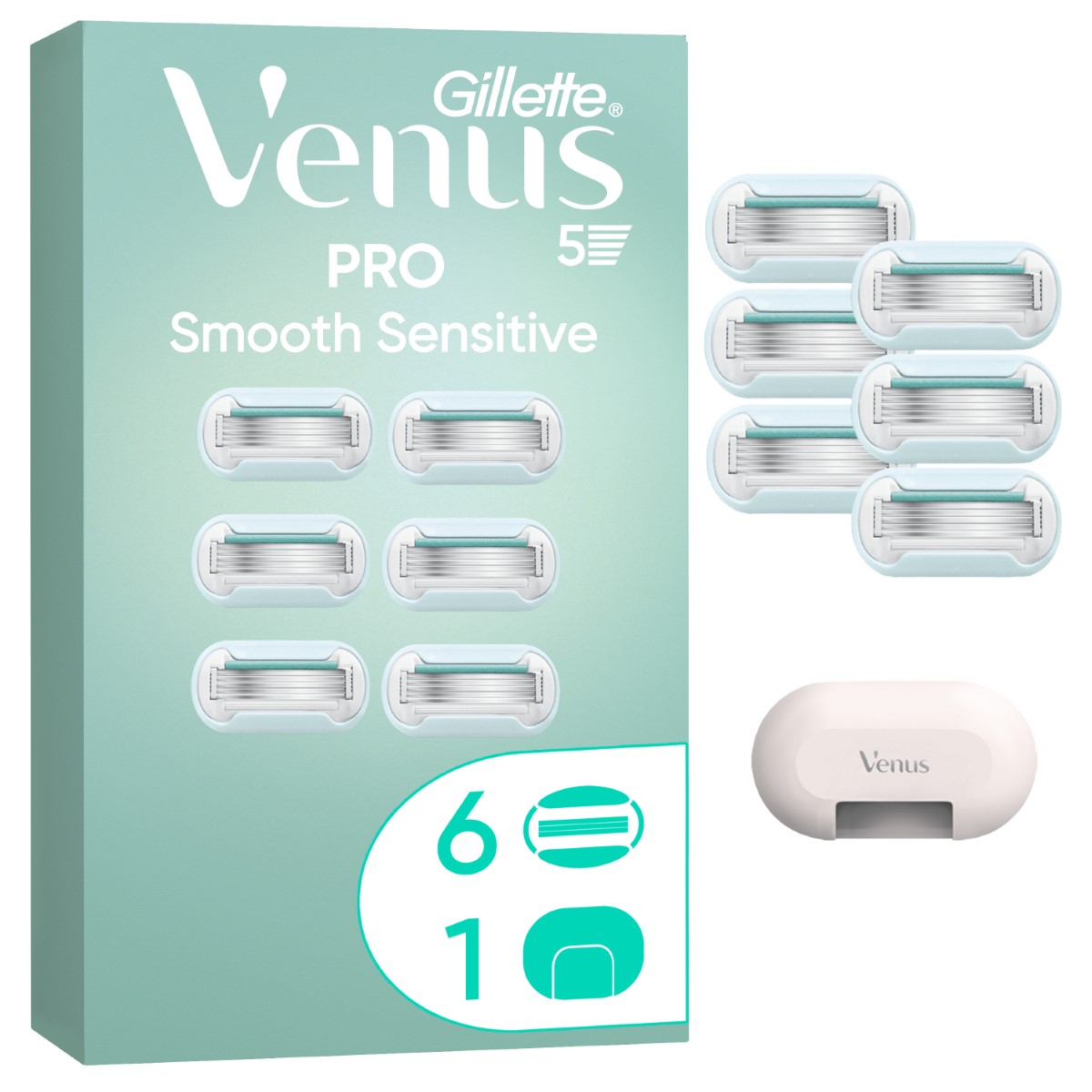 Želite li svojoj osjetljivoj koži pružiti nježnu glatkoću koju zaslužuje? Upoznajte brijač za žene Gillette Venus Pro Smooth Sensitive. Posebno osmišljen za žene s čak i najosjetljivijom kožom, ovaj brijač pruža dugotrajne rezultate brijanja za do 30 dana glatkoće. Naša lubrikantna trakica SkinCushion (i SkinElixir s dodatkom malo aloa vere) pomaže zaštititi vašu kožu za do 0% iritacije uzrokovane brijanjem. Tražite dodatnu kontrolu? Na sve smo mislili: naša izdržljiva i ergonomska metalna drška odlično leži u ruci za bolju preciznost. Ova drška za višekratnu upotrebu kompatibilna je i sa svim zamjenskim britvicama za brijač Venus. Držač za tuš koji dolazi uz nju pomaže u održavanju oštrica čistim i suhim između brijanja. Pružite svojoj koži odgovarajuće brijanje. Nabavite Venus Pro Smooth Sensitive. Tražite još načina da koži pružite ljubav koju zaslužuje? Proizvodi Gillette Venus posebno su osmišljeni za vaše tijelo i dlačice, bilo da dlačice želite podrezati, obrijati, oblikovati ili urediti rubove. Istražite cijelu liniju već danas.