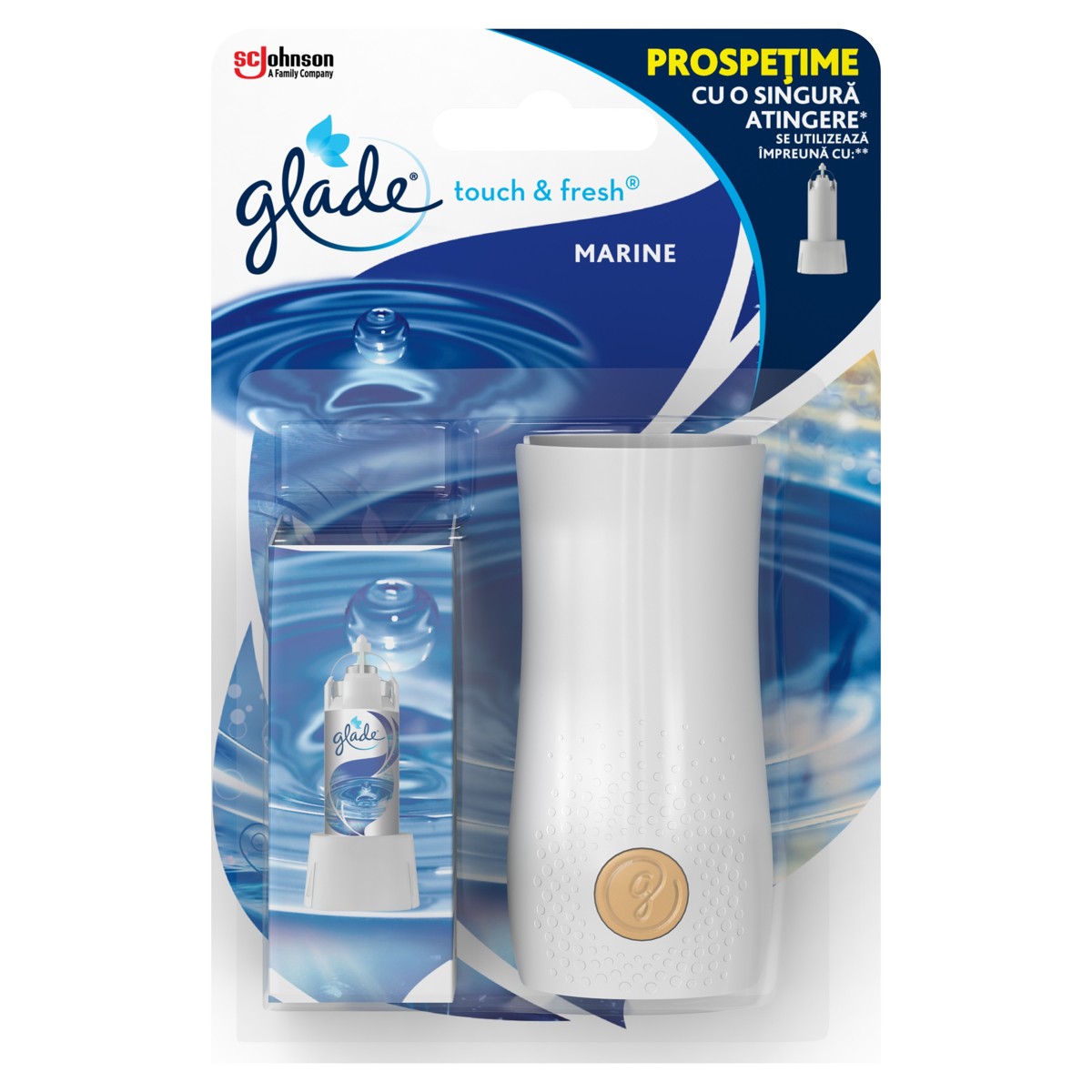 Glade® touch & fresh® osvježivač pruža koncentriranu svježinu u diskretnom i elegantnom dizajnu. Jedan dodir dovoljan je za osvježavanje prostorije. Glade® touch & fresh®osvježivač zraka je prenosiv, tako da ga možete postaviti bilo gdje u Vašemu domu za trenutnu svježinu. Pogodan je za korištenje na zidu, na svakoj ravnoj površini ili u ruci.