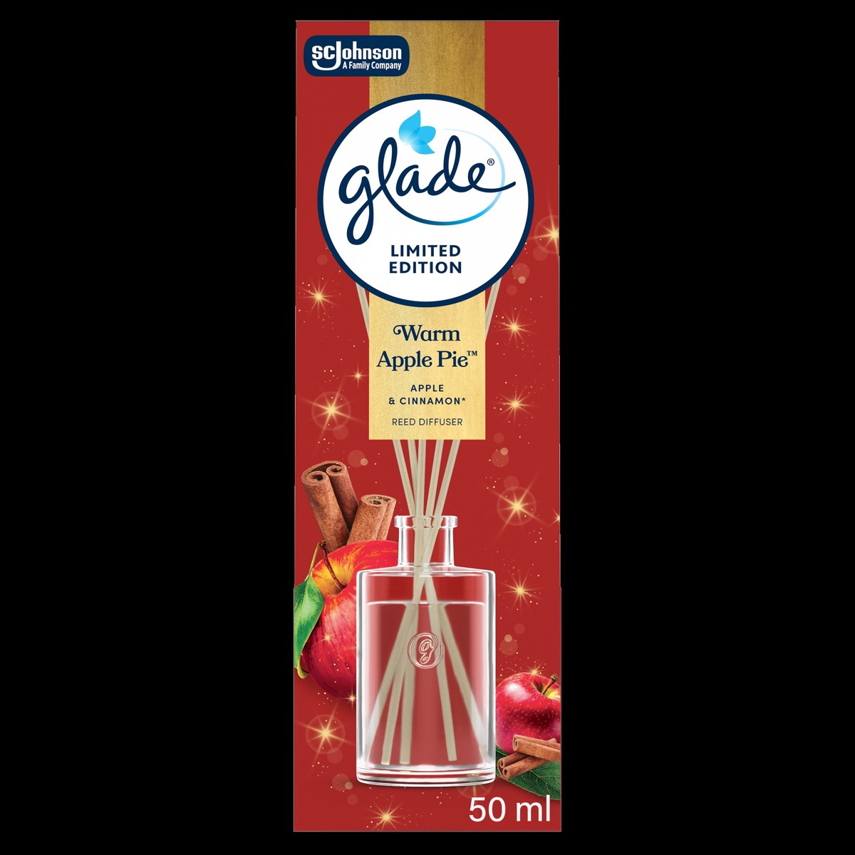 Glade® Reed Diffuser – Warm Apple Pie™ mirisni štapići (Limitirana zimska kolekcija)