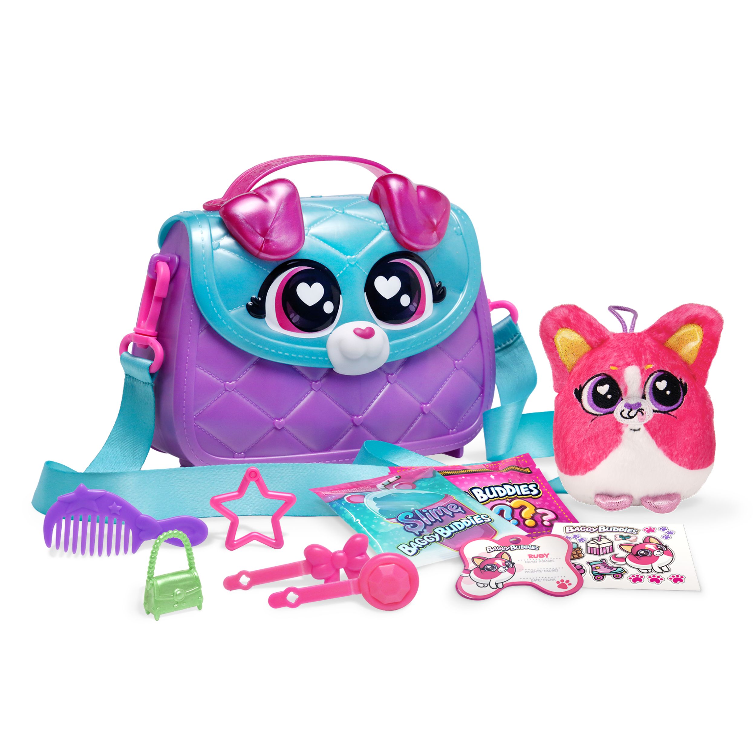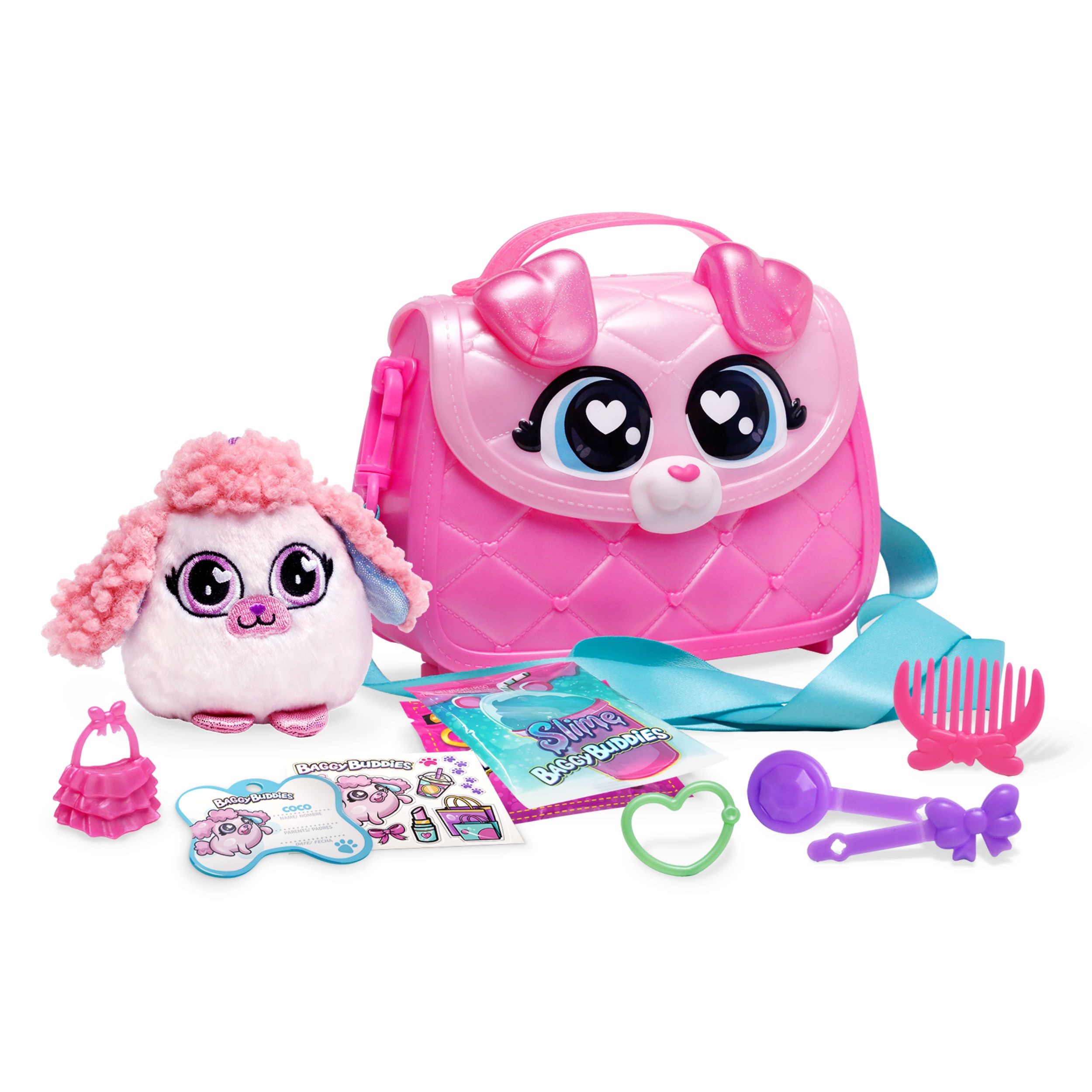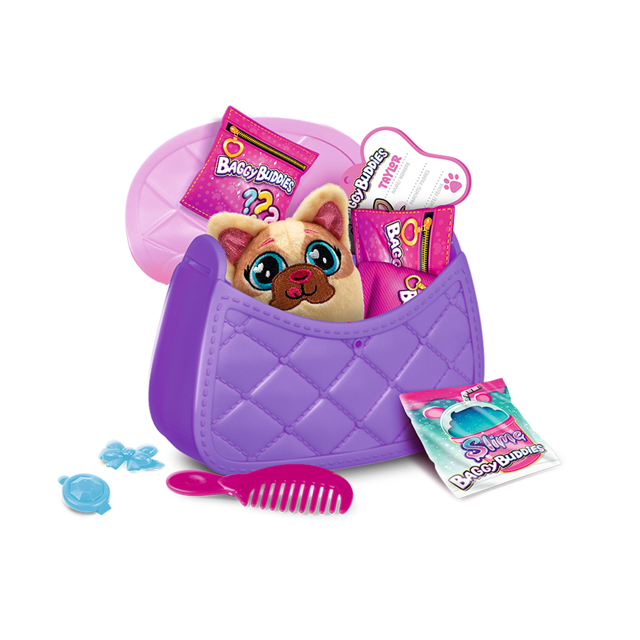 Sa 6 različitih modela torbica i psića, ova kolekcija postaje neizostavan dodatak vašoj zbirki. Svaka torbica skriva mnoštvo iznenađenja: od šarenih remenčića, novčanica, kreditnih kartica i slimeova koje simuliraju hranu za pse, pa sve do sjajnih dodataka poput mini torbice za vašeg psića, češlja i ukosnica – vaša avantura s Glam Buddiesima nikada neće biti dosadna!
