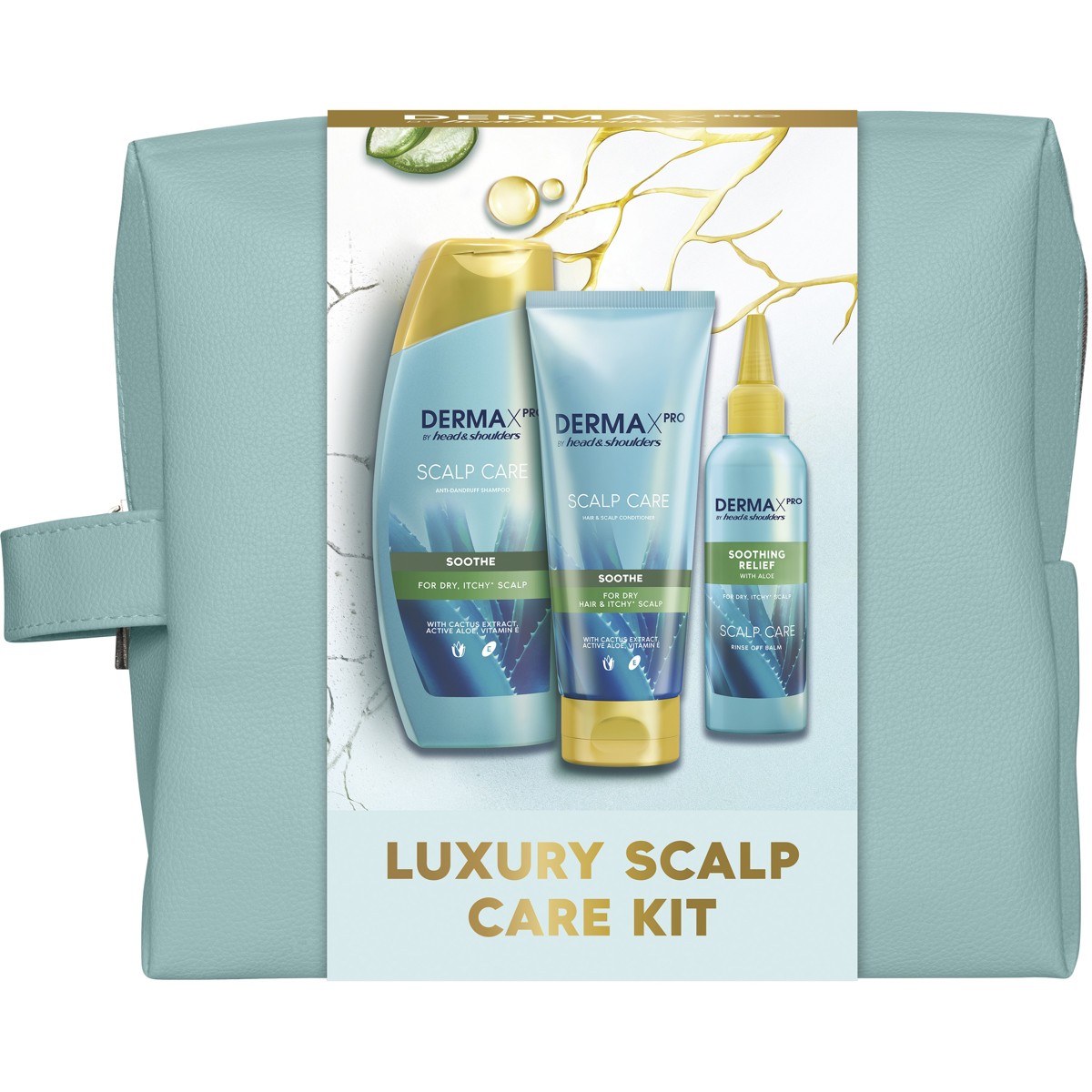 Otkrijte ultimativnu njegu za suho vlasište uz DERMA X PRO Head&Shoulders luksuzni poklon set. Set sadrži šampon protiv prhuti, hidratantni balzam, regenerator, a sve je pohranjeno u praktičnoj toaletnoj torbici. Šampon protiv prhuti za suho vlasište, regenerator i tretman zajedno pružaju vrhunsku njegu vlasišta te uz redovitu upotrebu pomažu u sprječavanju suhoće i perutanja.