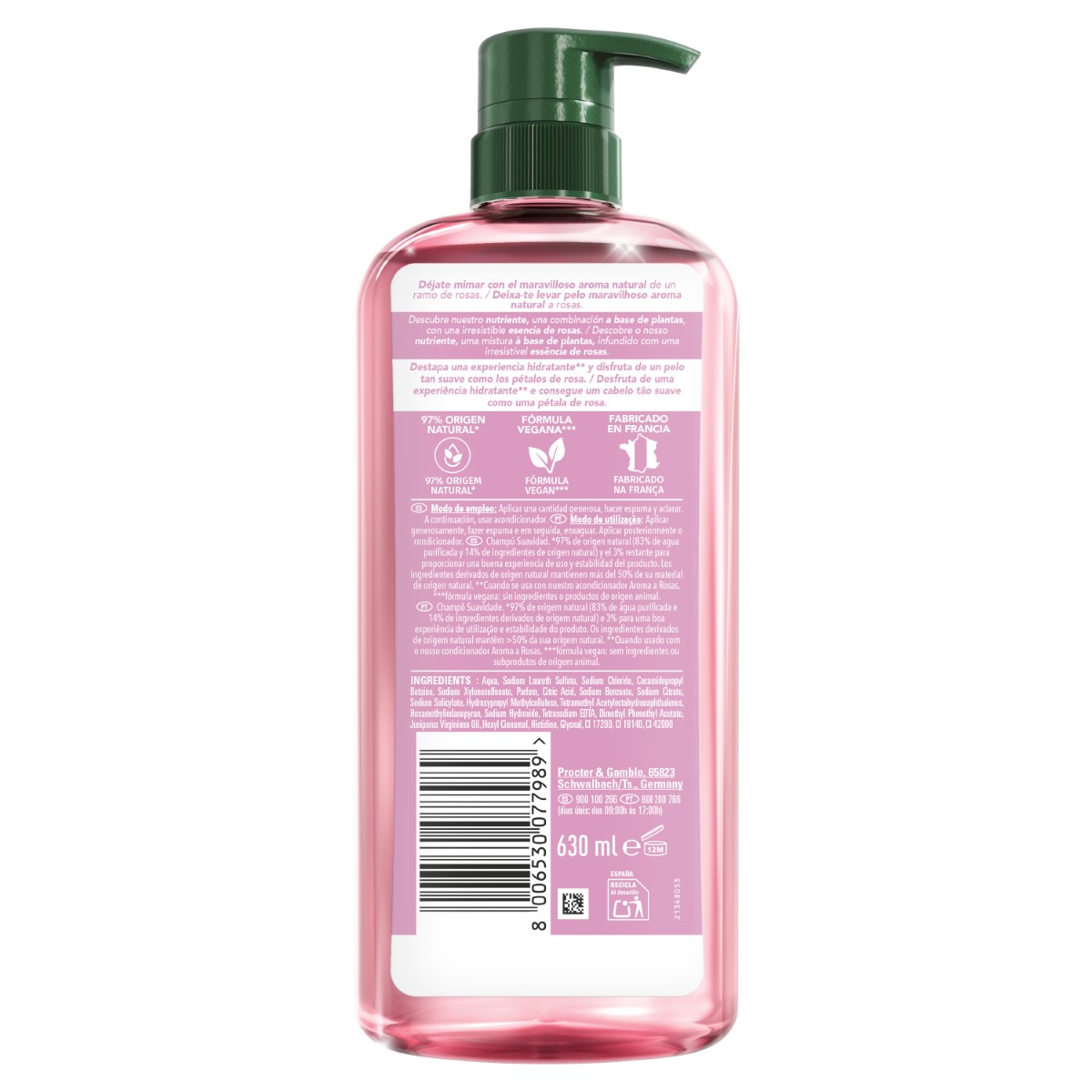 Pred vama je još više ružičastih dana. Šampon Herbal Essences Rose Scent Petal Soft pomaže transformirati suhu kosu u predivno svilenkastu i podiže raspoloženje obavijajući vas cvjetnim mirisom. Naša kombinacija nutrijenata prirodnog porijekla sadrži pravu esenciju Ruža, ručno ubranih u Grasseu, na jugu Francuske. Rezultat je veganska formula bez silikona koja stvara pjenu slatkog mirisa koja pročišćava i njeguje suhu kosu.. Objedinili smo pomno odabrane sastojke prirodnog porijekla kako bismo donijeli ljepotu biljaka u vašu kupaonicu. Obnovite prirodnu ljepotu svoje kose i probudite osjetila potpunom rutinom iz naše kolekcije Rose Scent Petal Soft.