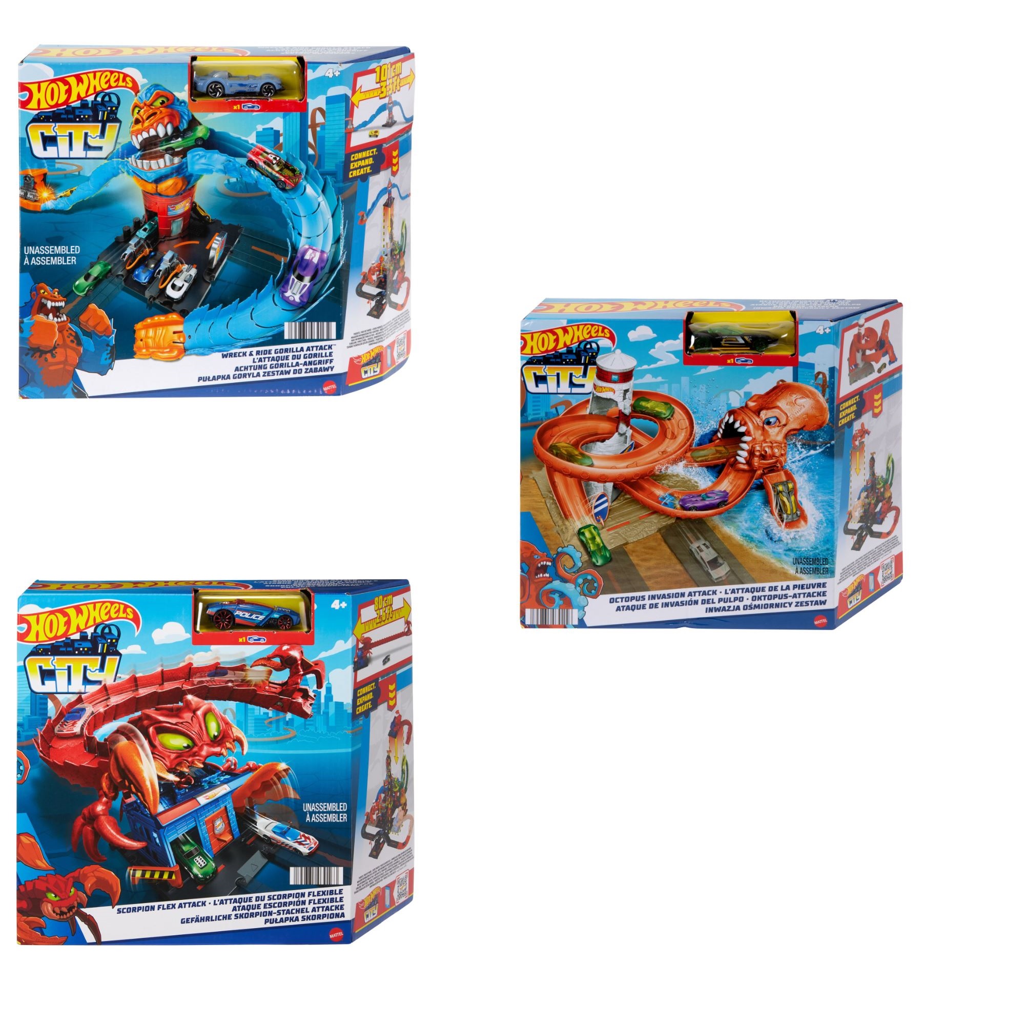 Ovi setovi se mogu međusobno povezati kao i s drugim Hot Wheels setovima tako da djeca mogu izgraditi svoj jedinstveni grad pun izazova i neprijateljskih prepreka koje nadahnjuju kreativno pripovijedanje kroz igru.