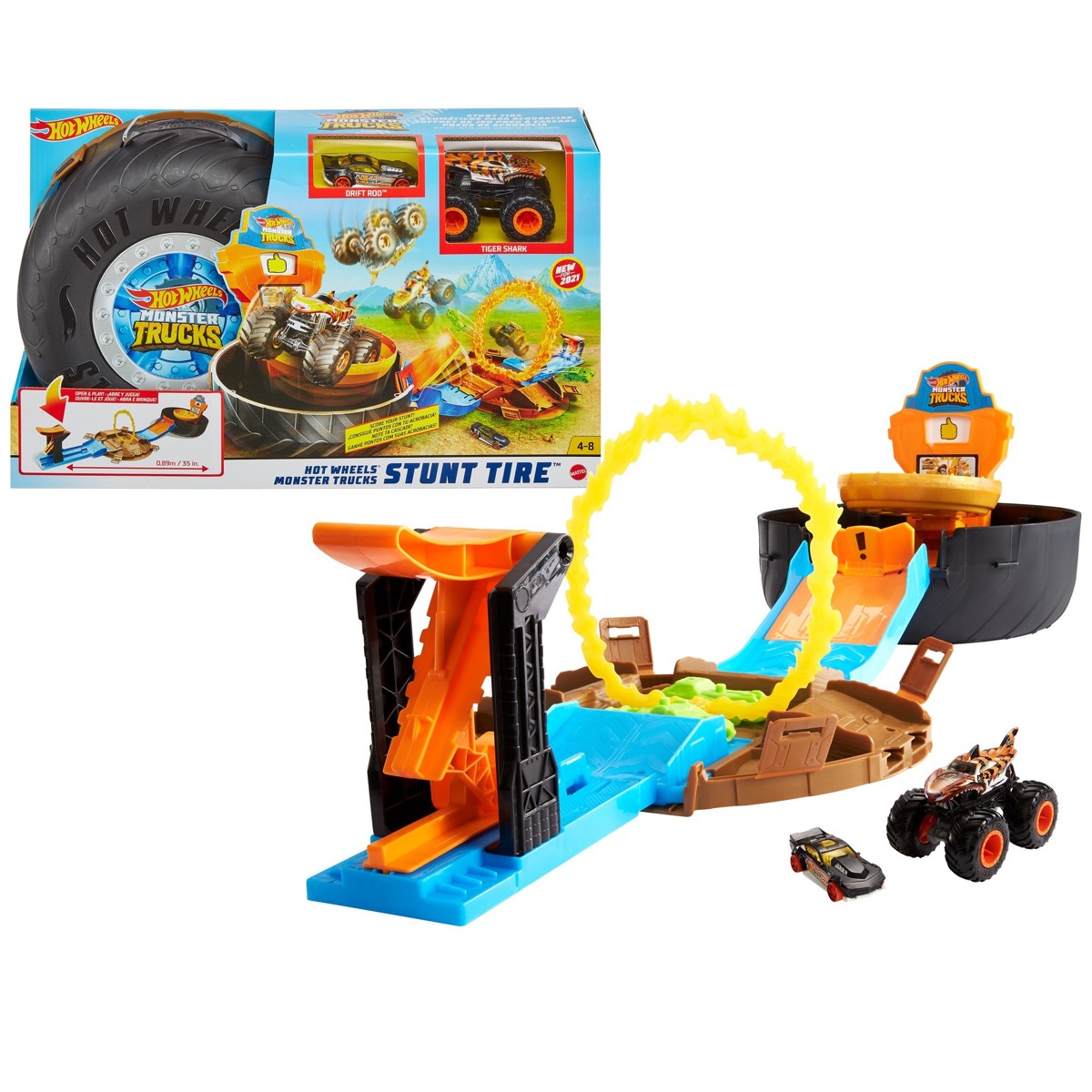 Hot Wheels Monster Truck set s gumom preklapa se uz pomoć prijenosne ručke i otvara kako bi se otkrila velika arena za rušenje, razbijanje i uklanjanje.