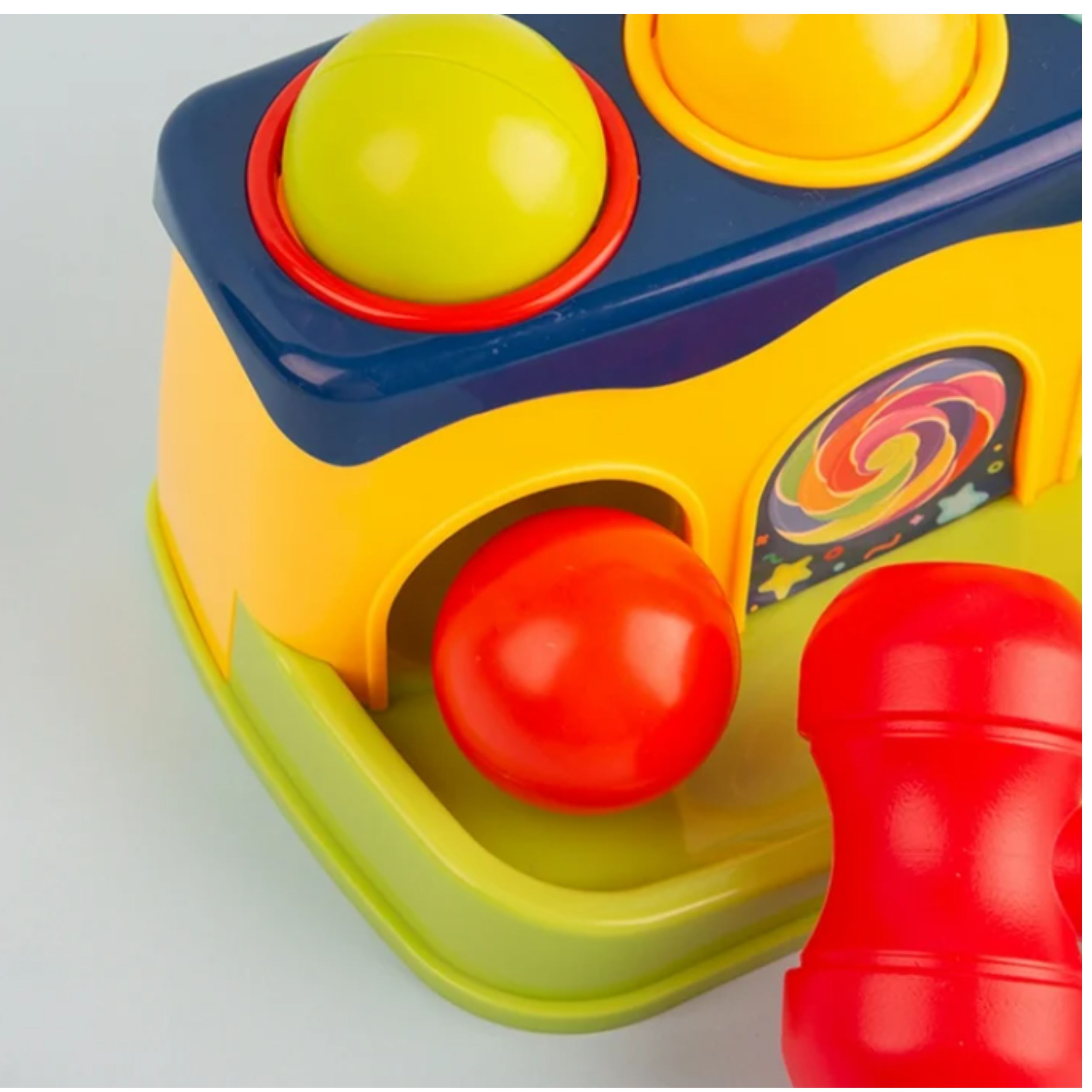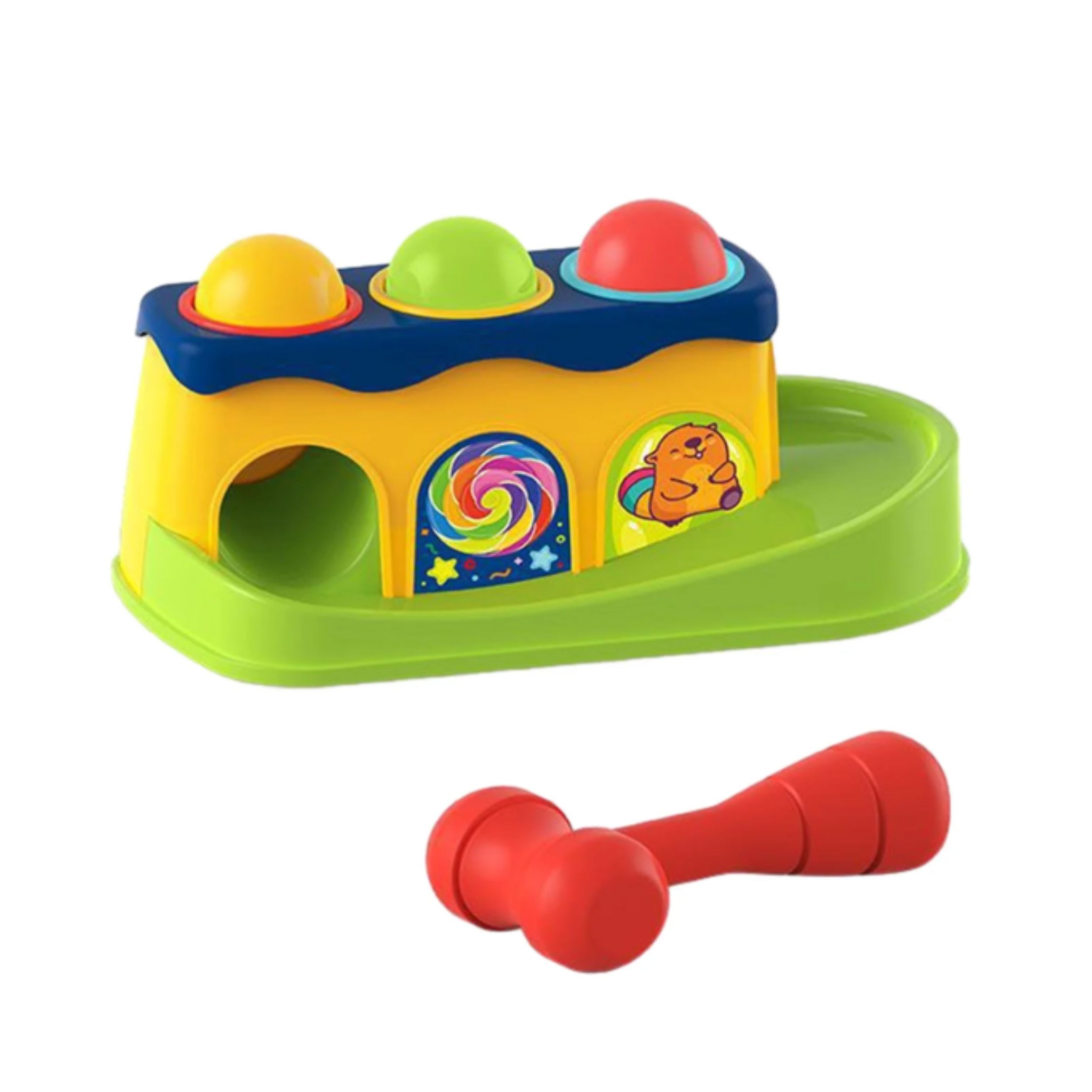 – Zabavna interaktivna igra: Djeca će uživati u udaranju šarenih loptica čekićem, promatrajući kako se loptice kreću i kotrljaju.