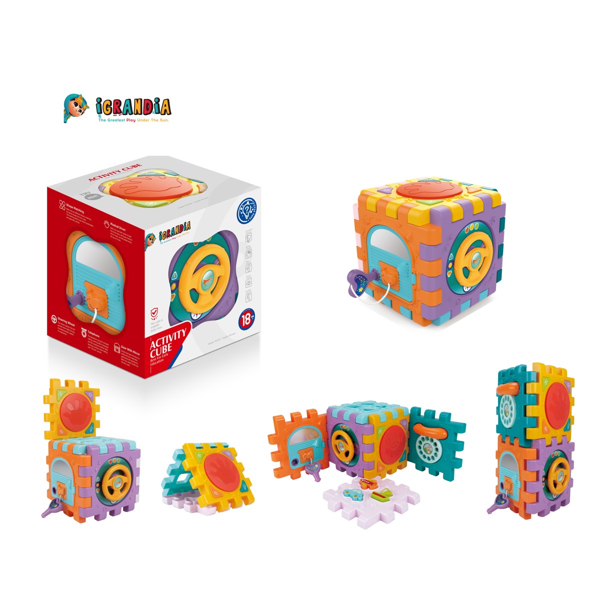 Ova kocka za slaganje namijenjena je bebama i pruža im priliku za zabavno i interaktivno učenje.