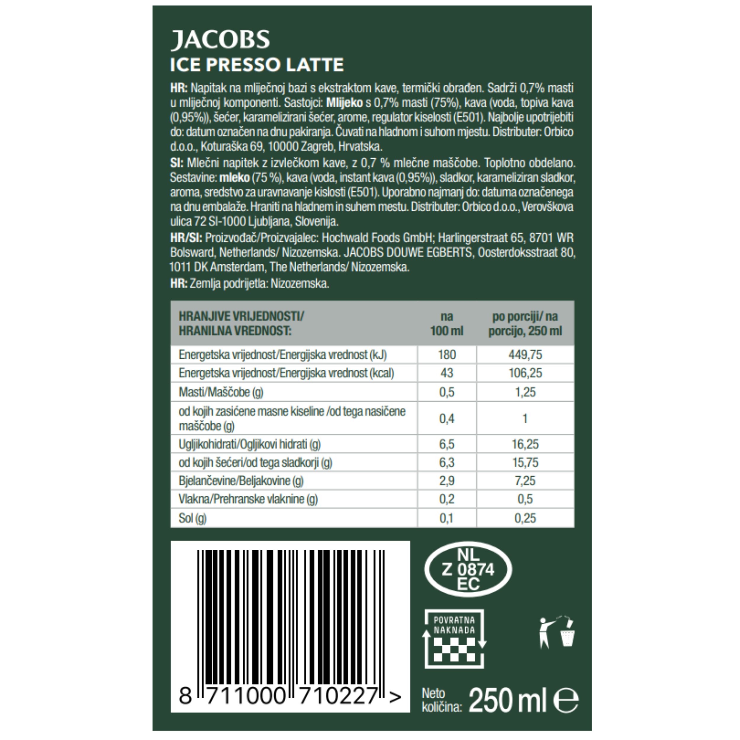 JACOBS, ledena kava, Ice Presso Latte, 250 ml