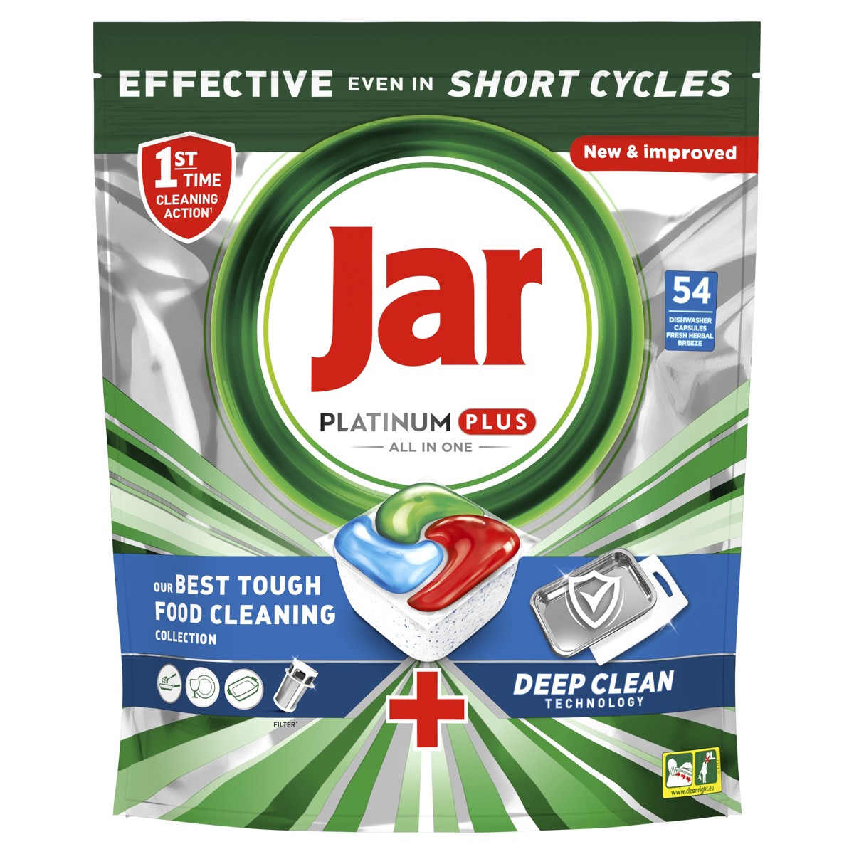 Jar Platinum Plus jamči izvanredno čišćenje, uklanjajući tvrdokorne ostatke hrane čak i pri zahtjevnom testiranju na kratkim programima pranja. Dakle, ako nemate vremena, ne brinite. Perite na kratkom programu. Jar kombinira tekućinu i prašak u jednoj moćnoj kapsuli.