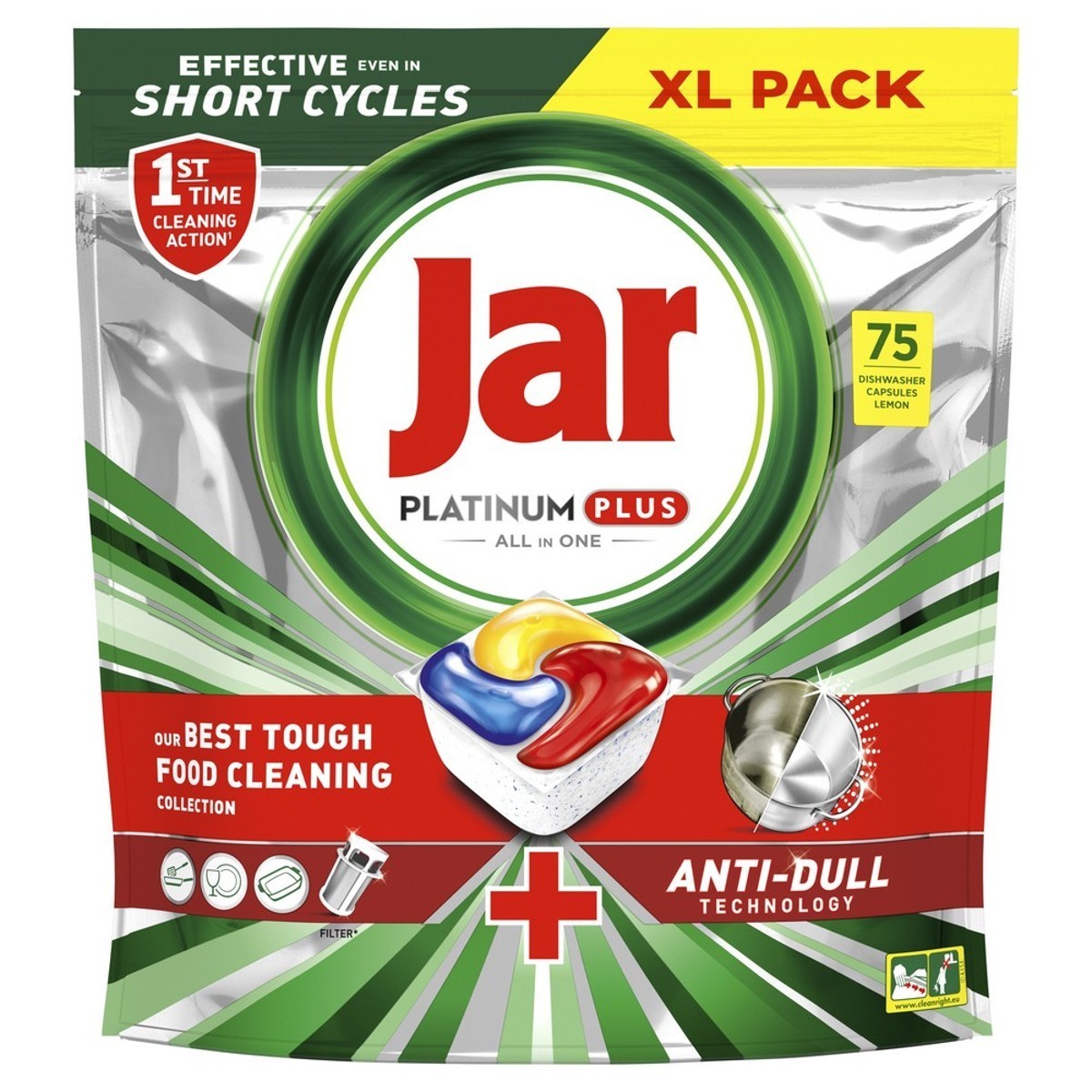 Jar Platinum Plus jamči izvanredno čišćenje, uklanjajući tvrdokorne ostatke hrane čak i pri zahtjevnom testiranju na kratkim programima pranja. Dakle, ako nemate vremena, ne brinite. Perite na kratkom programu. J