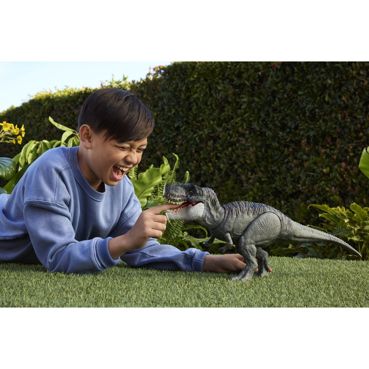 Oslobodite snagu najpoznatijeg predatora uz Power Devour Tyrannosaurus rex figuru, inspiriranu filmom Jurassic World Rebirth! Ovaj T. rex donosi zastrašujuću funkciju ponavljajućeg ugriza koja će oduševiti svakog ljubitelja akcije. Kratkim pritiskom na jezik aktivira se pobjednički urlik, dok dulji pritisak pokreće neprekidnu akciju ugriza uz spektakularne svjetlosne i zvučne efekte. Zahvaljujući pokretnom repu, možete upravljati glavom dinosaura u svim smjerovima dok mu čeljust ostaje širom otvorena za napad. Za digitalnu avanturu, skenirajte kod na nozi u besplatnoj Jurassic World Play aplikaciji i otključajte uzbudljive utrke vozilima po kopnu, zraku i moru!