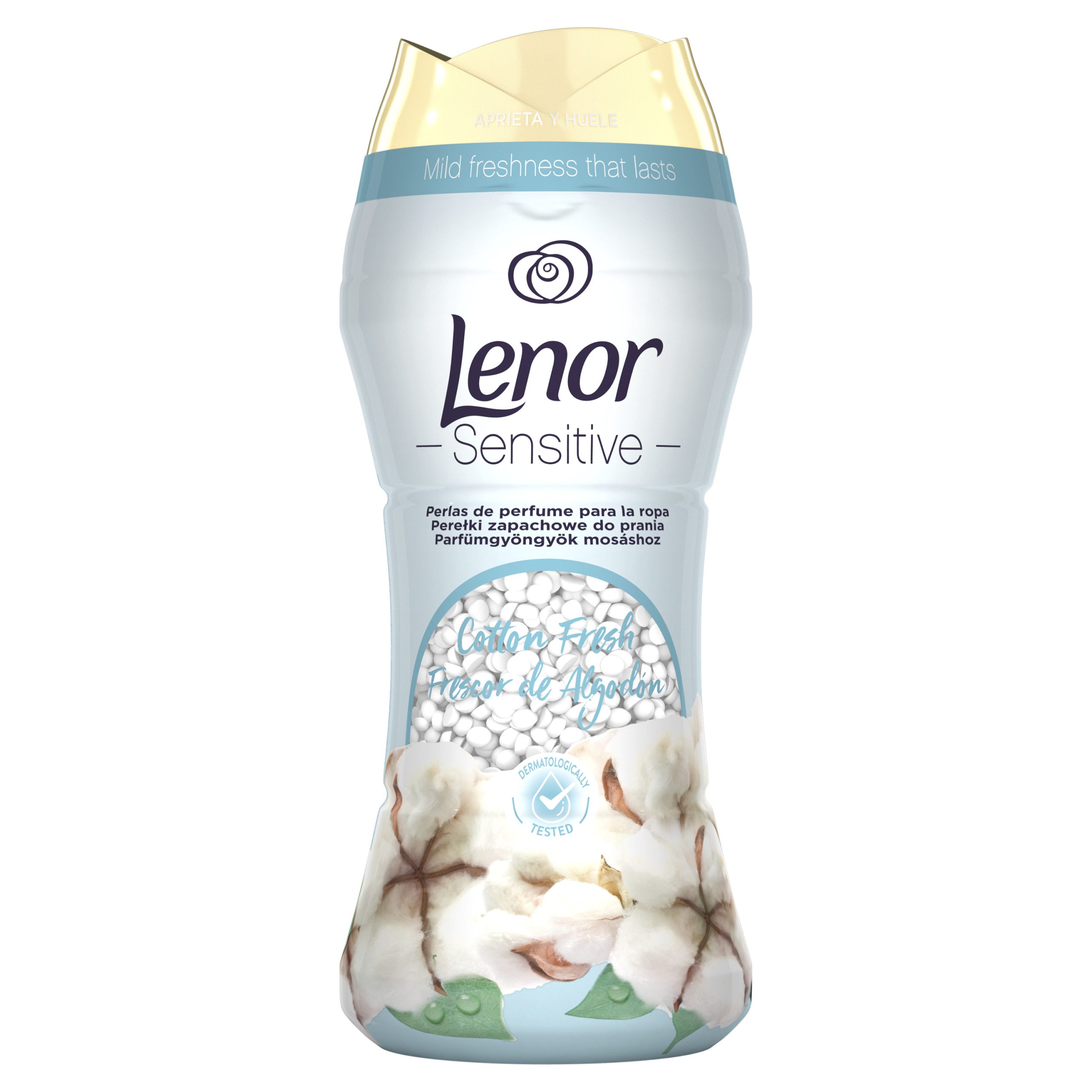 Lenor mirisne perlice za intenzivniji miris rublja Sensitive Cotton vašem rublju daju dodatnu dugotrajnu svježinu i ispunjavaju ga ugodnim svježim mirisom pamuka.
