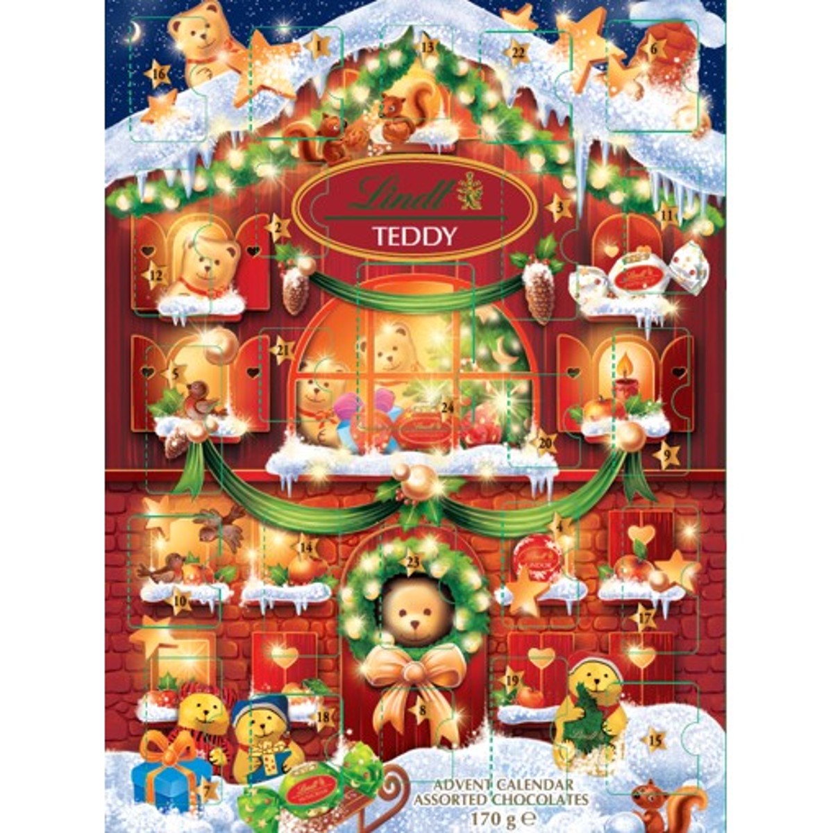 Adventski kalendar sadrži mješavinu mliječnih čokolada te bijele i mliječne čokolade s kremastim punjenjem, ukupno 28 komada. Unutar kalendara se nalaze: TEDDY mini mliječna čokolada, TEDDY FRIENDS mini mliječna čokolada s bijelim punjenjem, mini čokolade s kremom od lješnjaka, mini mliječna čokolada, dvostruka mliječna čokolada, LINDOR mini bijele kuglice, LINDOR mini mliječne kuglice, napolitanke od mliječne čokolade i srce od mliječne čokolade.