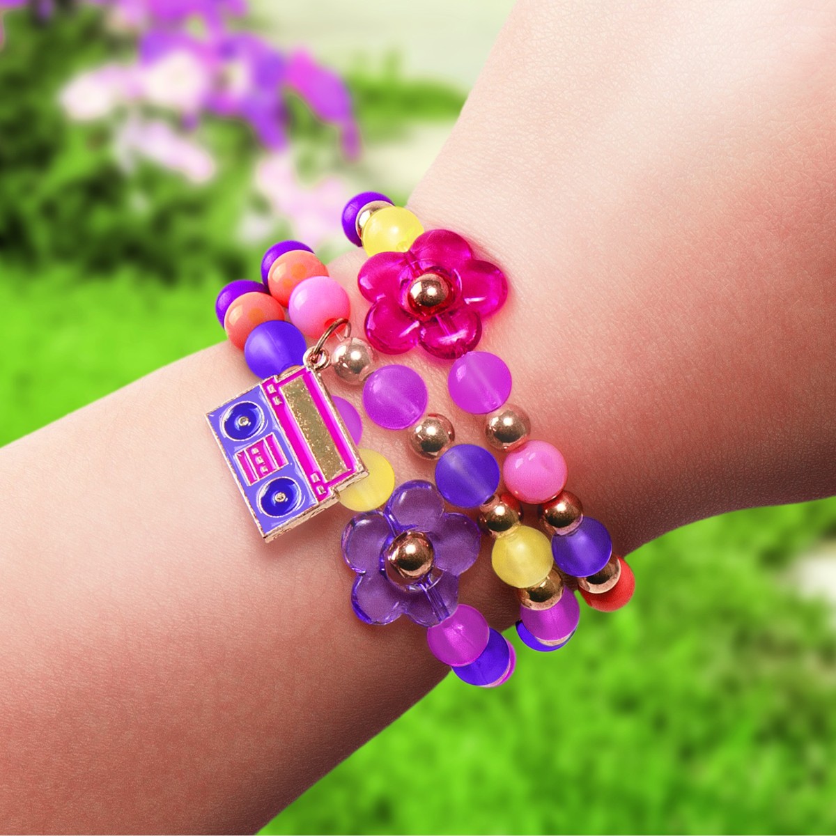 Magija boja na tvom zapešću! S ovim DIY setom možeš izraditi 5 jedinstvenih narukvica koje mijenjaju boju i prilagođavaju se tvojem stilu u svakom trenutku. Boje izblijede kada si unutra, ali se vraćaju u živahne nijanse čim su izložene prirodnoj sunčevoj svjetlosti. Uz razne perlice, cvjetne i metalne privjeske te elastičnu vrpcu, sve što ti treba za kreiranje pravih malih umjetničkih djela već je uključeno!