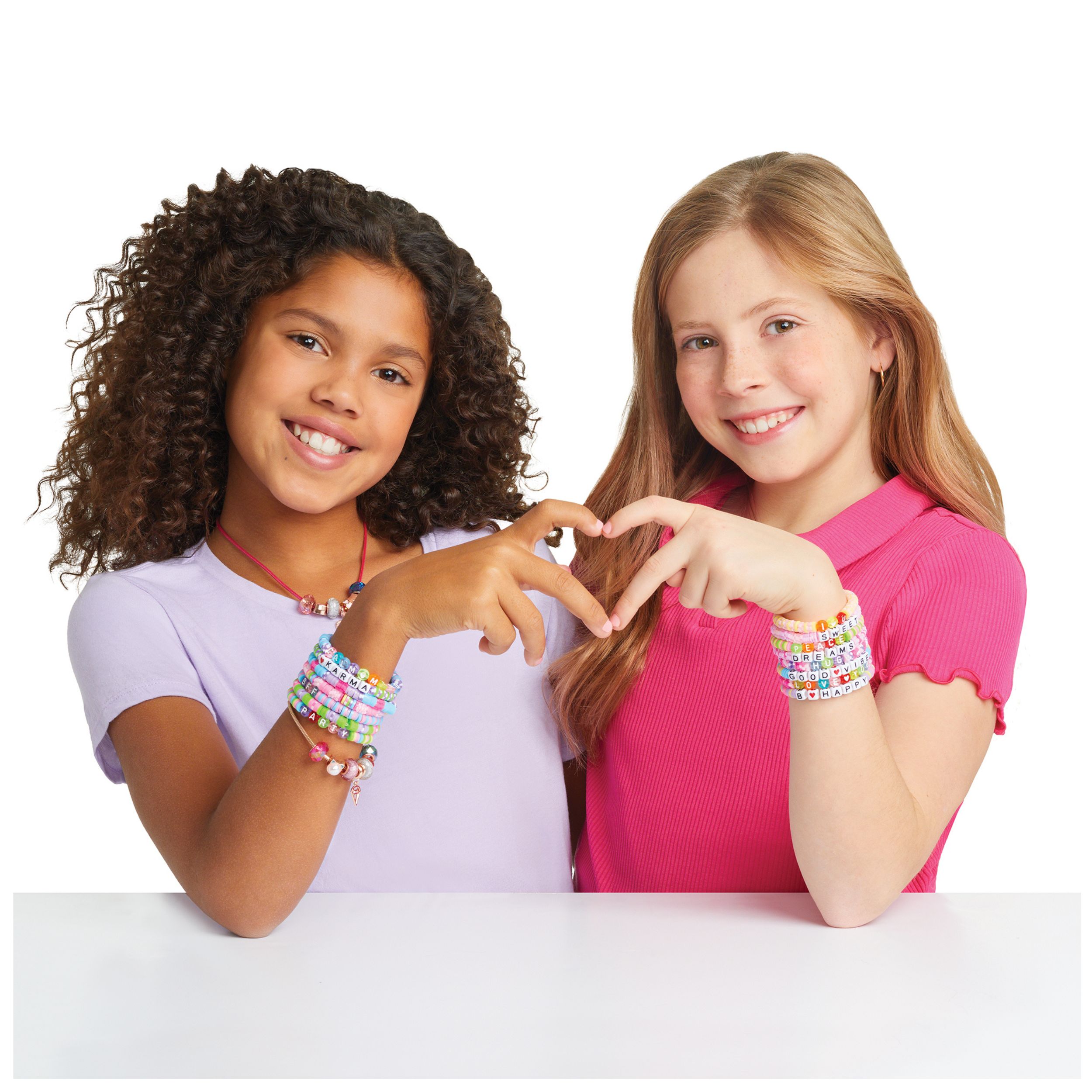 Ovaj ekskluzivni set omogućuje vam izradu više od 30 unikatnih narukvica pomoću elastičnih traka, raznovrsnih privjesaka i više od 2100 perli. Uz bogatu kolekciju privjesaka, heishi perli i abecednih perli, možete izrađivati narukvice prijateljstva koje ćete podijeliti sa svojim prijateljicama.