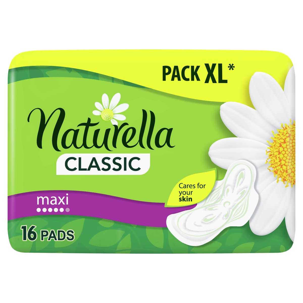 Ovi ulošci Naturella Classic Maxi s krilcima s mirisom nadahnutim kamilicom imaju jedinstven sustav upijanja i dizajn s cvjetnom uzorkom koji raspoređuje i odvlači tekućinu daleko od kože, pružajući vam osjećaj ugodne suhoće.