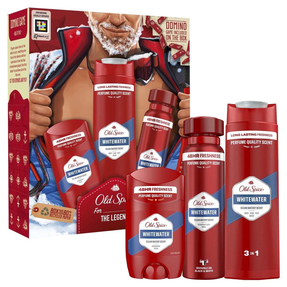 Tražite li savršen poklon za njega, darovni kompleti Old Spice pravo su rješenje. Darovni kompleti za muškarce Old Spice najbolji su izbor kada želite zadiviti modernog muškarca jer je jednostavno nemoguće pogriješiti s neodoljivim muževnim mirisima Old Spice. Darovni komplet Alpinist Old Spice sadrži dezodorans u stiku Whitewater, dezodorans u spreju Whitewater i gel za tuširanje Whitewater. Proizvodi dolaze u kartonskoj kutiji s dizajnom Alpinist koja uključuje uradi-sam domino. Samo izrežite dijelove sa strana kutije i uživajte. Proizvodi u darovnom kompletu Alpinist donose miris Whitewater za muškarce s blistavim notama limuna i limete u čistoj, zaokruženoj bazi. Naposljetku, omot darovnog kompleta izrađen je od 80% recikliranog papira i materijala iz odgovornih izvora s certifikatom FSC. Kako to da ovaj darovni komplet Old Spice za muškarce nije već u vašoj košarici?