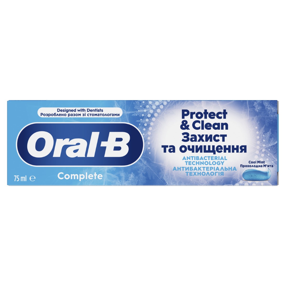 Asortiman zubnih pasta Oral-B Complete pruža klinički dokazano dubinsko čišćenje i zaštitu zahvaljujući antibakterijskoj tehnologiji s cinkom koja se bori protiv glavnog uzroka zadaha tako što uklanja bakterijske zubne naslage koje uzrokuju neugodan miris, za svjež dah tijekom 24 sata (uz pranje zubi dvaput dnevno). Dostupne su tri varijante (Protect & Clean, Ultimate Fresh i Extra White) i 2 okusa (Extra cool i Cool mint).