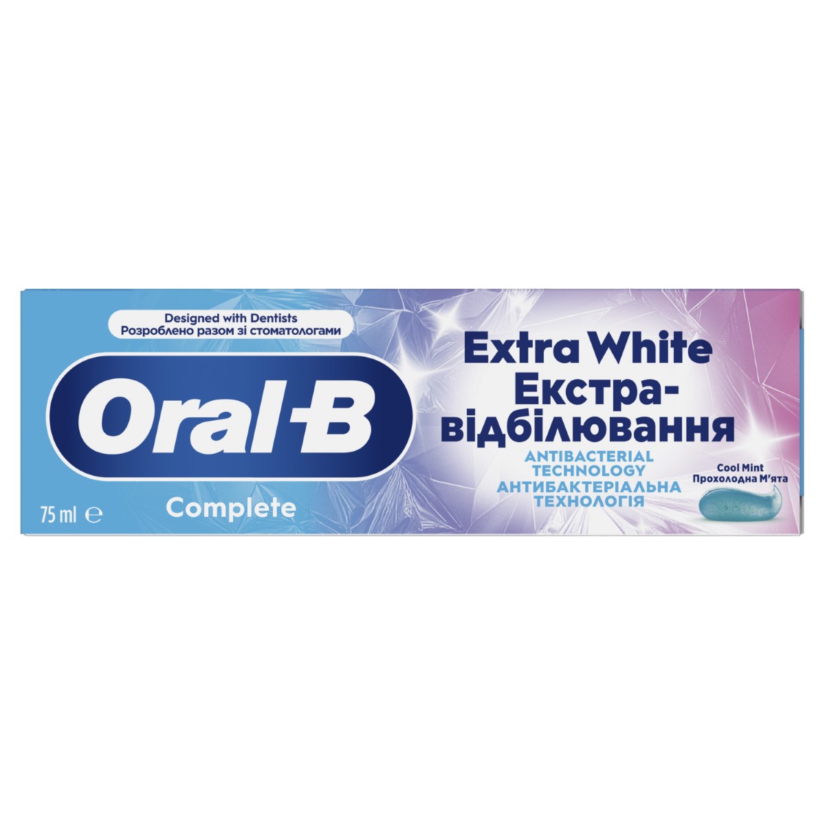 Asortiman zubnih pasta Oral-B Complete pruža klinički dokazano dubinsko čišćenje i zaštitu zahvaljujući antibakterijskoj tehnologiji s cinkom koja se bori protiv glavnog uzroka zadaha tako što uklanja bakterijske zubne naslage koje uzrokuju neugodan miris, za svjež dah tijekom 24 sata (uz pranje zubi dvaput dnevno). Dostupne su tri varijante (Protect & Clean, Ultimate Fresh i Extra White) i 2 okusa (Extra cool i Cool mint).