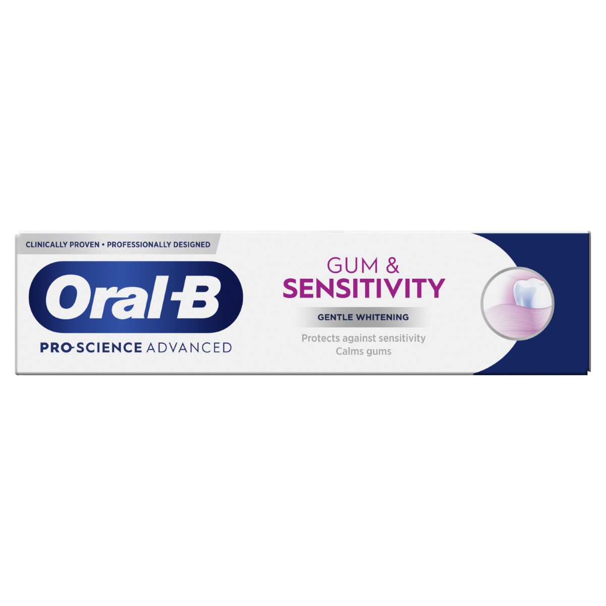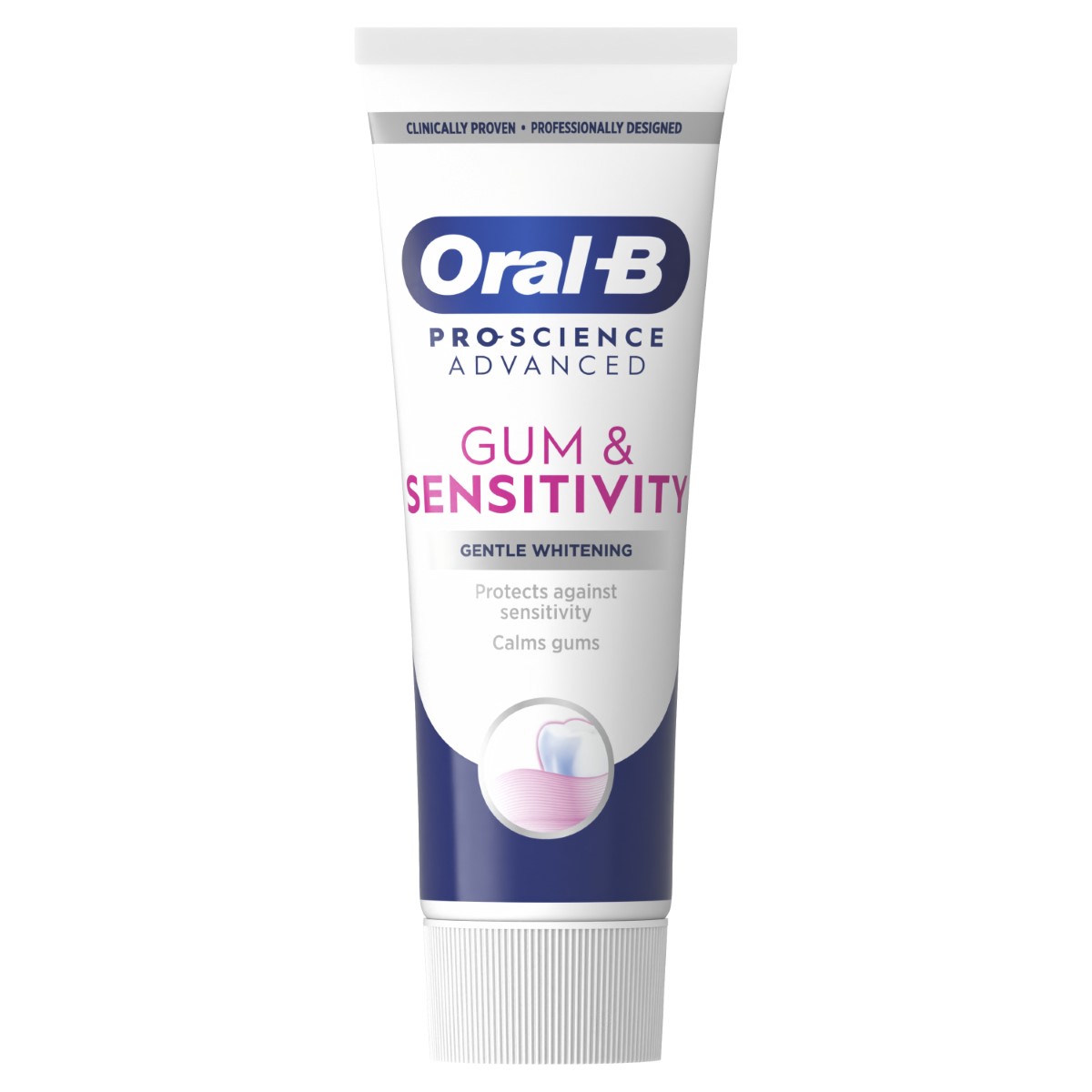 Zubna pasta Oral-B Pro-Science Advanced Gum & Sensitivity Gentle Whitening klinički dokazano štiti od osjetljivosti zubi i umiruje desni, za ugodan osjećaj u ustima. Njezina jedinstvena tehnologija ActivCalm štiti osjetljive zube stvarajući sloj zaštite i hladeći desni tijekom i nakon pranja zubi te je izuzetno ugodna zahvaljujući nježnoj pjeni u ustima.