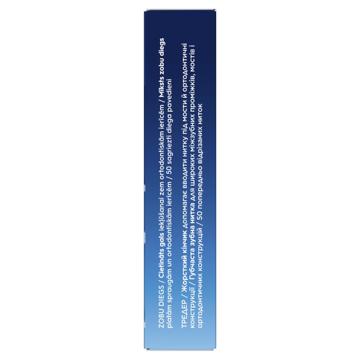 Zubni konac Oral-B Super idealan je za čišćenje ortodontskih zubnih aparatića, mostova i širokih razmaka između zuba. Ima 3 jedinstvene komponente: ojačani rub, spužvasti i obični zubni konac.