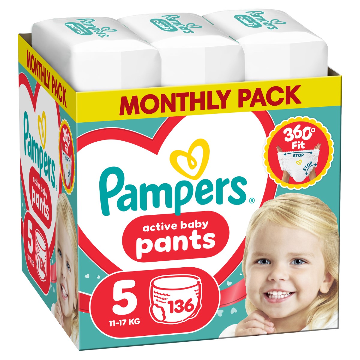 PAMPERS Active Baby Pants, pelene – gaćice, Vel. 5, 11kg-17kg, 136 kom