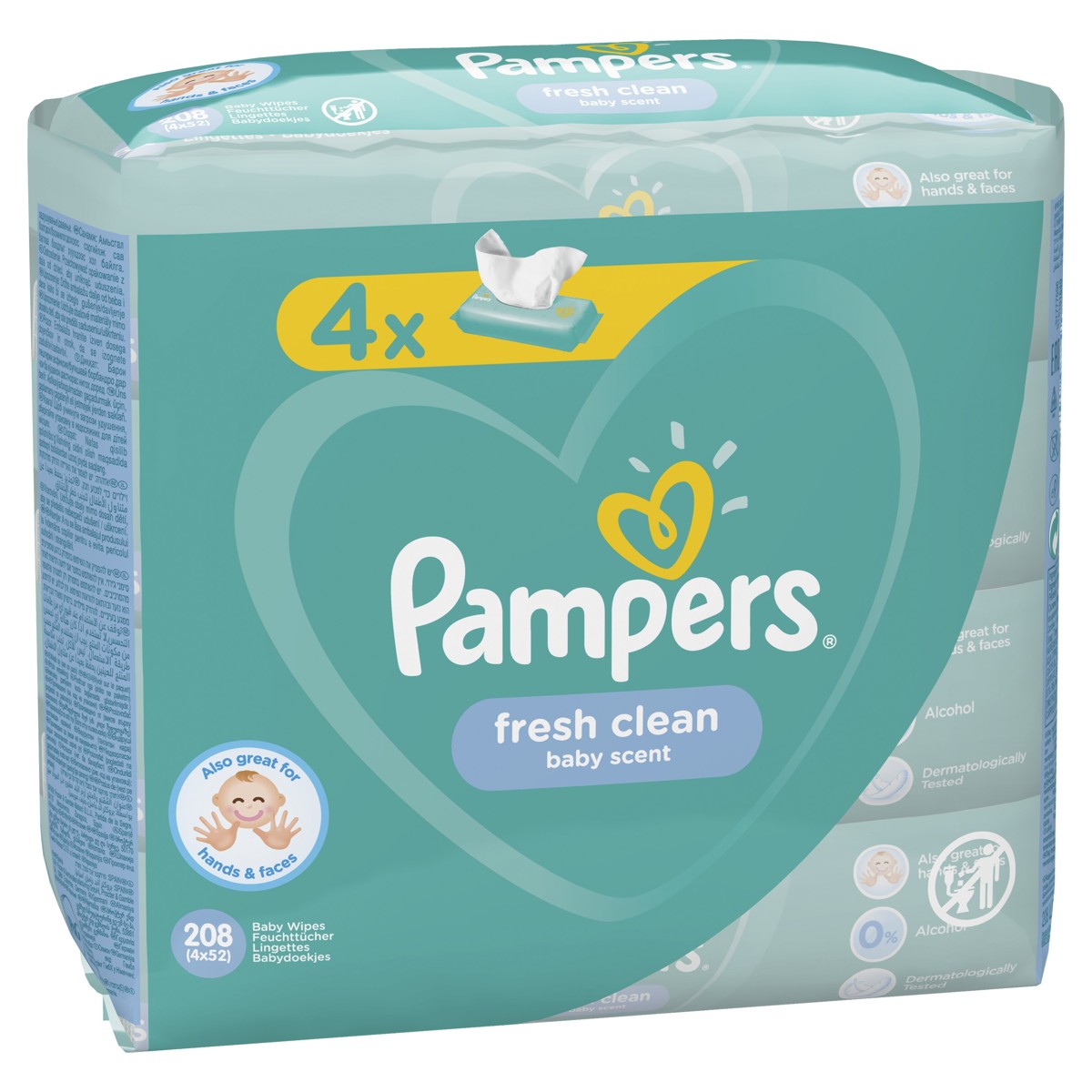 PAMPERS Fresh Clean, vlažne maramice, 4 pakiranja, 208 kom