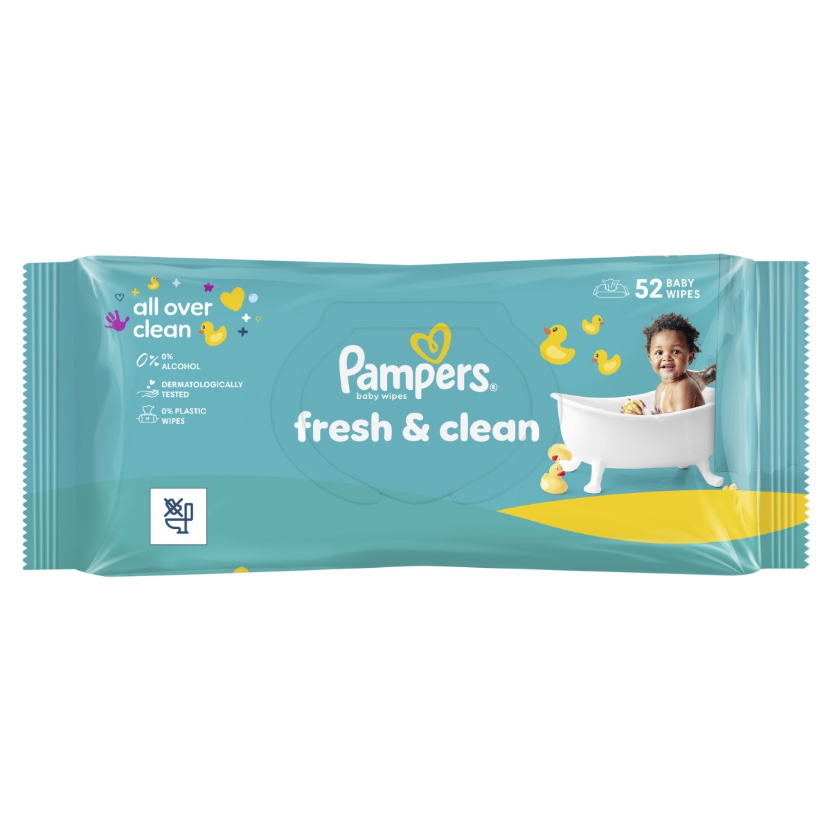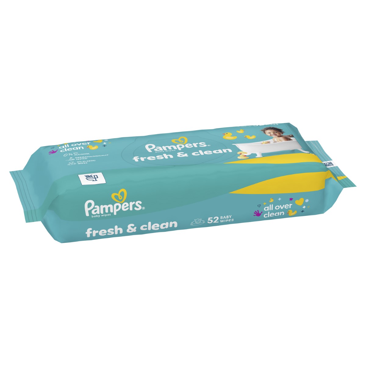 Dječje vlažne maramice Pampers Fresh Clean za potpunu čistoću. Naše vlažne maramice nježno čiste i pomažu obnoviti prirodni pH kože zahvaljujući posebnoj formuli. Sadrže 0% alkohola. Formula je dermatološki ispitana. Odobrili su je dermatolozi udruženja Skin Health Alliance.