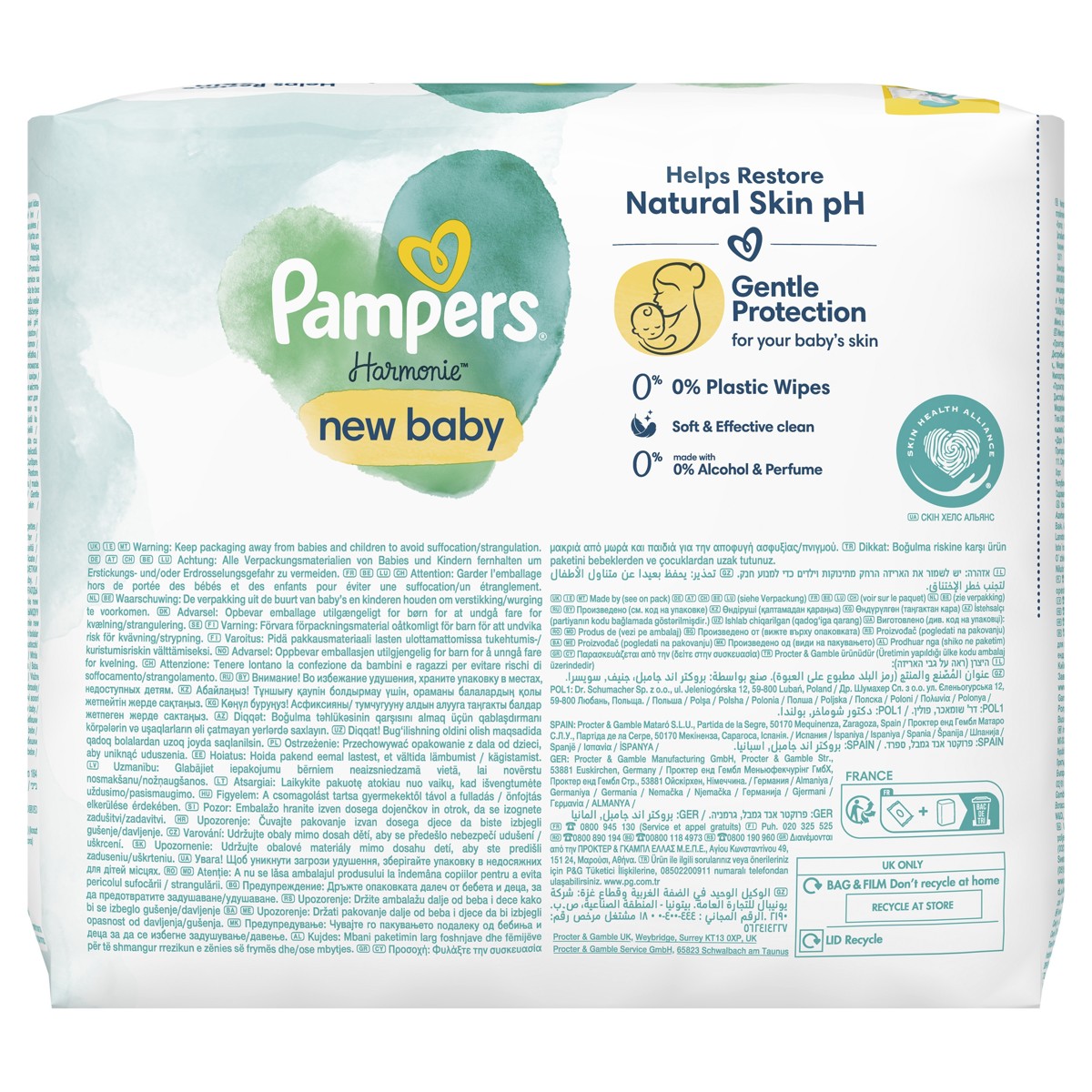 Enzimi u mokraći i stolici mijenjaju pH kože i tako povećavaju rizik od iritacije i osipa. Sve vlažne maramice Pampers sadrže jedinstvenu formulu koja štiti prirodni pH kože bolje od pamuka i vode, tako da je čak i najnježnija koža čista i zaštićena od iritacija.