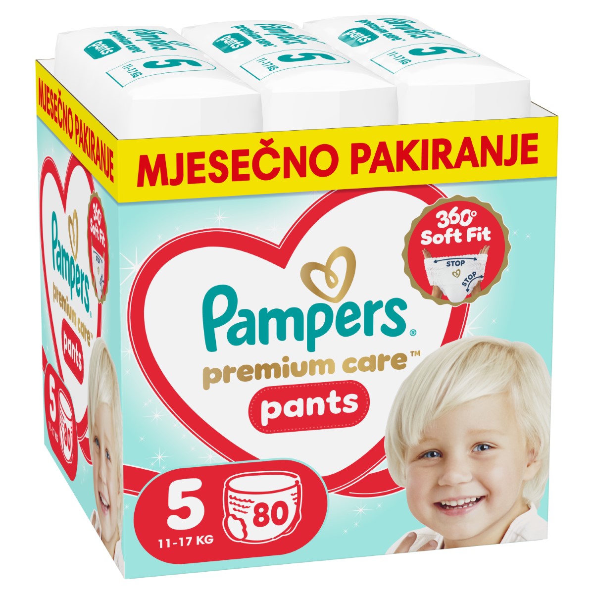 PAMPERS Premium Care Pants, pelene – gaćice, Vel. 5, 11kg-17kg, 80 kom