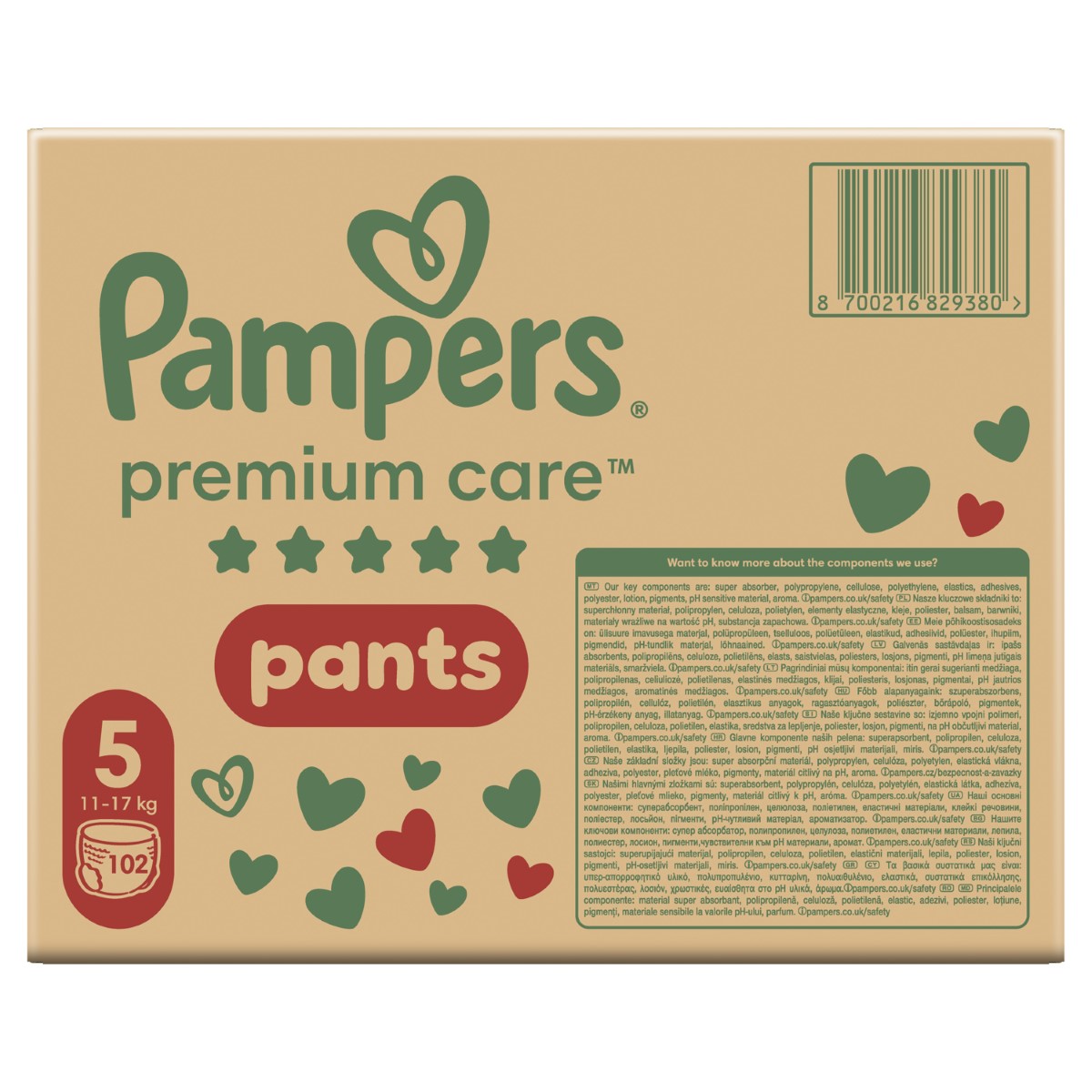 PAMPERS Premium Care, pelene – gaćice, veličina 5, 12-17kg, 102 kom