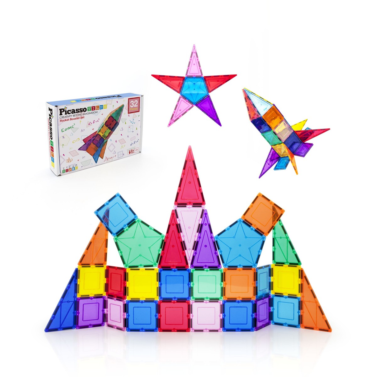 Pripremite se za svemirske avanture uz Picasso Tiles raketa set od 32 dijela! Mali astronauti sada mogu izgraditi vlastitu svemirsku letjelicu koristeći jednostavne i intuitivne magnetske blokove. Spremite se za putovanje među zvijezdama!