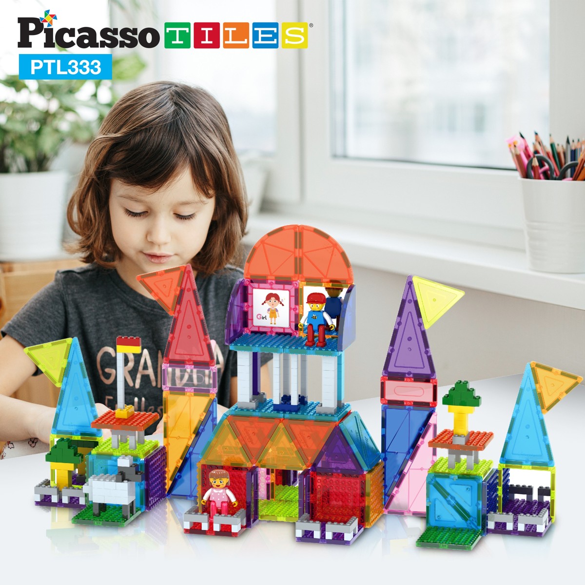 Picasso Tiles set s kockicama od 333 dijela uključuje raznovrsne magnetske pločice i kockice pružajući beskonačne mogućnosti za igru i stvaranje.