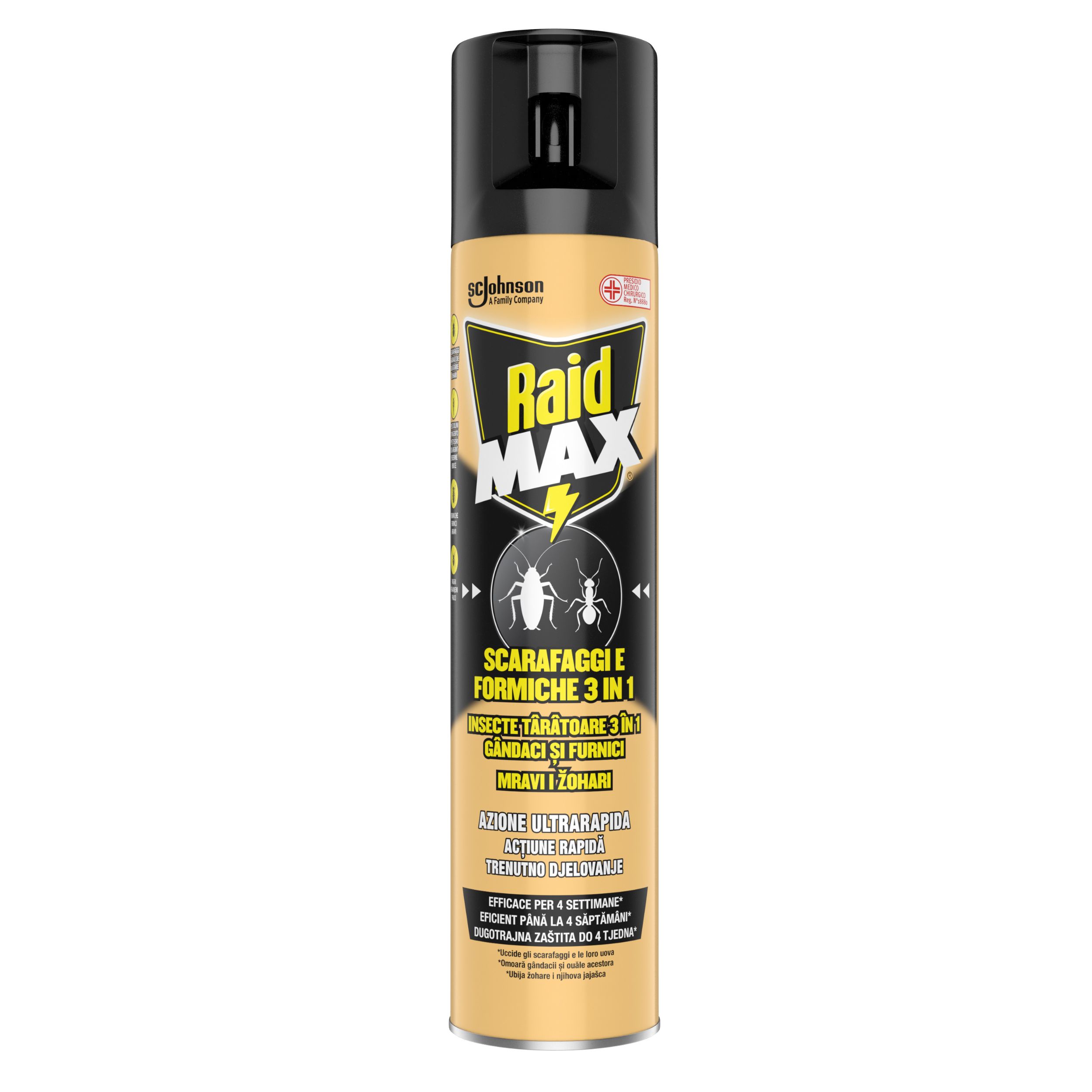 Raid® Sprej protiv mrava i žohara zahvaljujući djelotvornoj formuli osigurava dugotrajnu zaštitu do 4 tjedna uništavajući žohare i njihova jajašca.