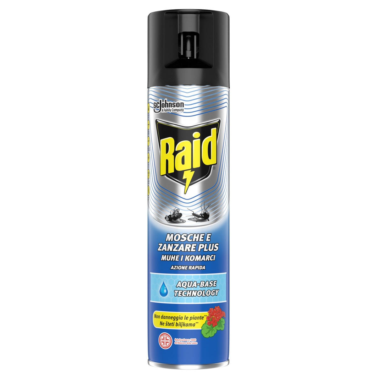 Raid® Sprej protiv letećih insekata s aqua-base tehnologijom zahvaljujući svojoj formuli djelotvoran je protiv muha, običnih komaraca, tigrastih komaraca, osa i svih drugih insekata poput moljaca, stršljena i mušica.