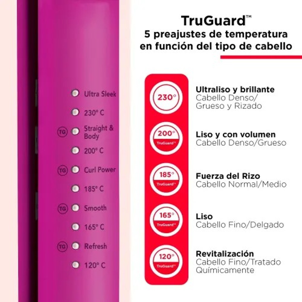 4 postavke TruGuard™ temperature i Colour guard funkcija čuvaju boju i sprječavaju oštećenja kose od topline