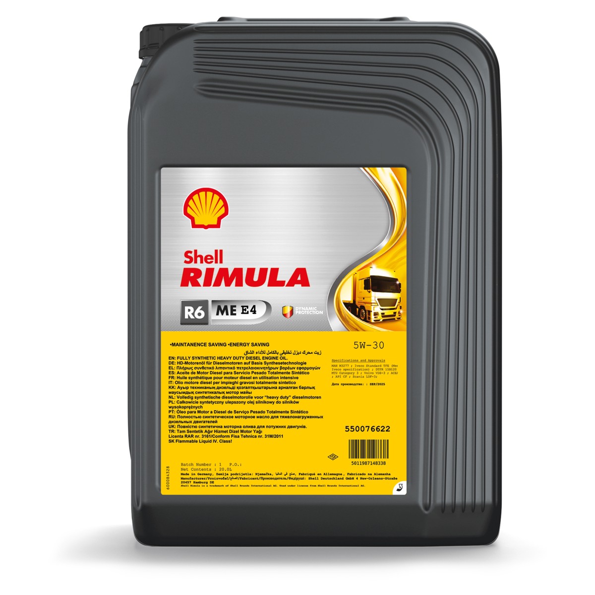 Shell Rimula R6 ME je vrhunsko sintetičko motorno ulje formulirano posebno za dizelske motore gospodarskih vozila. Koristi naprednu tehnologiju aktivne zaštite i višefunkcionalne aditive za beskompromisnu prilagodbu promjenjivim uvjetima rada motora.