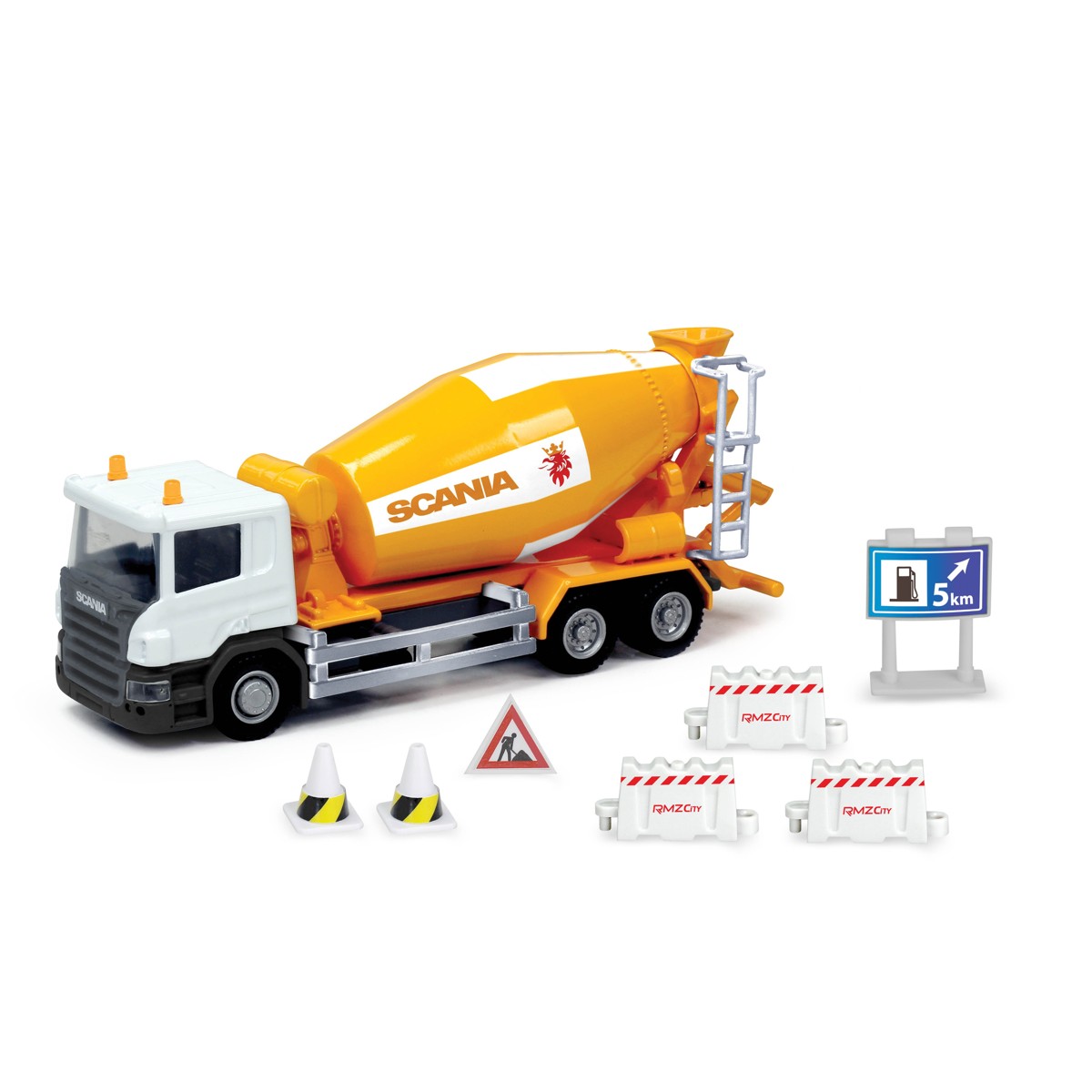 Sakupite cijelu ekipu specijalnih vozila: dostupni su **Scania kamion s kontejnerom, transporter za vozila, mikser za beton, cisterna za gorivo, kamion za smeće i vatrogasno vozilo**.