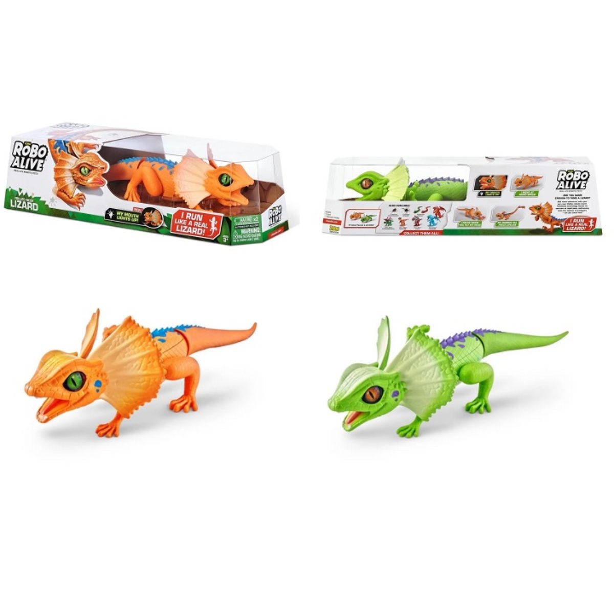 Jeste li dovoljno hrabri da ukrotite novog Robo Alive Guštera? Robotska tehnologija omogućuje mu nadmašiti čak i najbrže predatore. Nikad strašniji s očima koje sijaju, gumenim repom i glavom koja se miče!