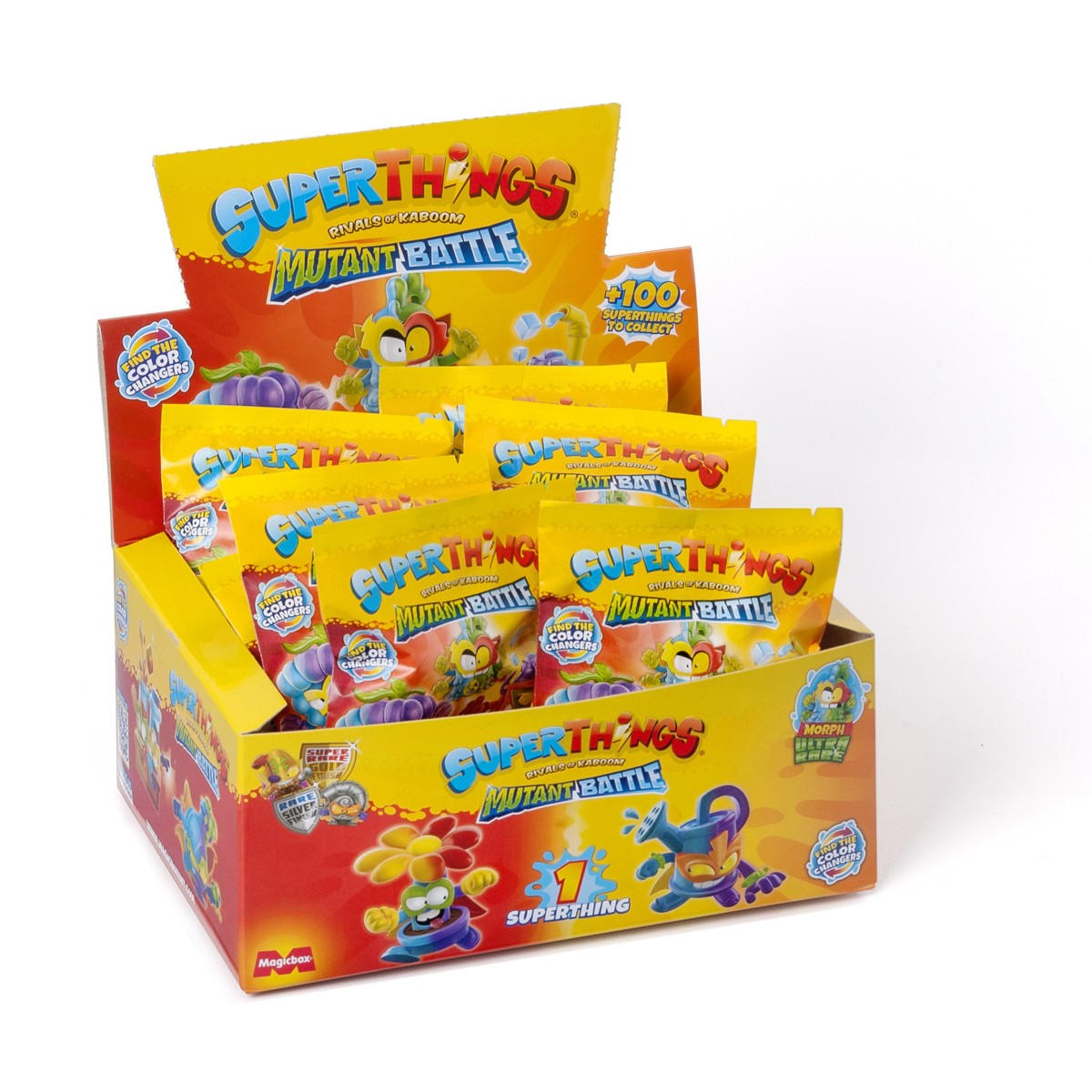 Otkrij novu seriju SuperThings Mutant Battle! Više od 100 novih likova za sakupljanje. Osim zlatnih i srebrnih kapetana, tu je i 6 figura te jedna ultra rijetka koja mijenja boju u dodiru s toplom ili hladnom vodom.