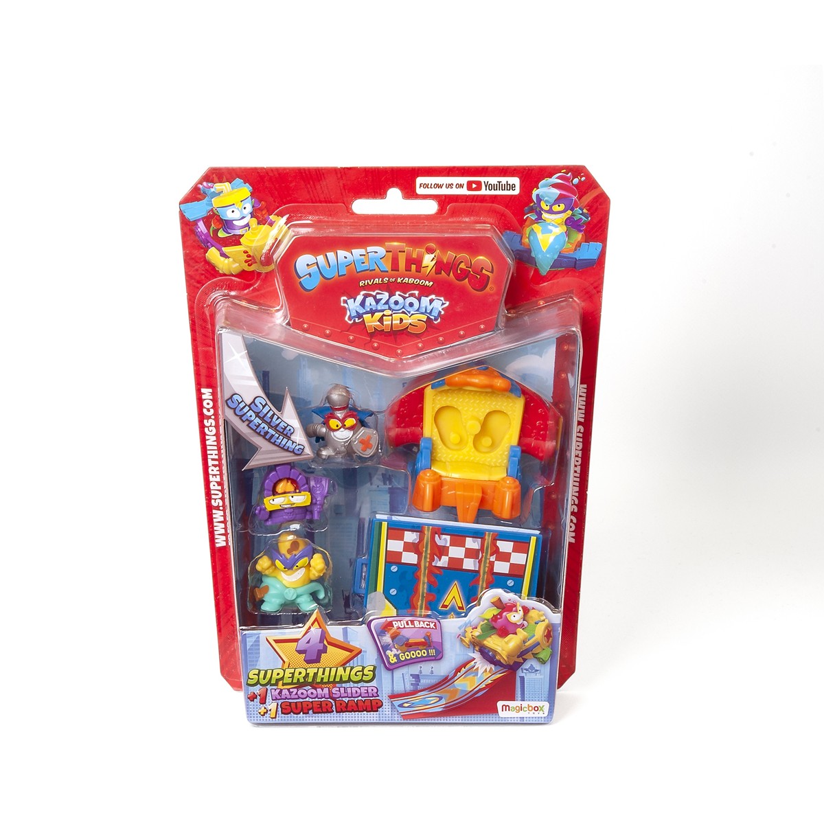 Otkrijte novo Kazoom Kids blister pakiranje koje sadrži 1 Kazoom Slider s “pull back” efektom, 1 rampu (dostupno samo u ovom blister pakiranju!) i 4 SuperThingsa iz serije Kazoom Kids: jedan od njih je srebrni kapetan!
