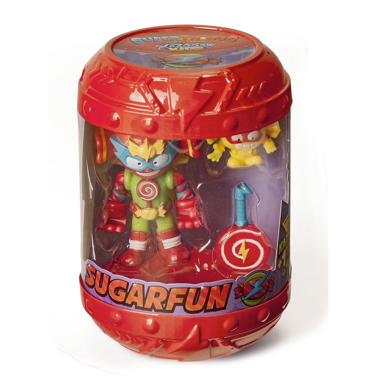 – Najveća Kazoom Kid zabava je Smash Crash! Voli upadati u nevolje i privlačiti pozornost. Također obožava svoje privlačne moći! Može bacati velike bombe konfeta- Sugarfun je ljubazan i odgovoran, te kapetan Candy Comba. Njegova bombonska super-snaga je zastrašujuća, a može izdužiti ruke poput korijena! Voli slatkiše i video igrice.