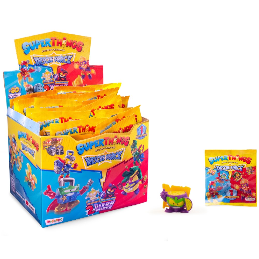 Otkrijte novu seriju SuperThingsa – Rescue Force! Više od 80 novih likova za sakupljanje: heroji i negativci, zlatne i srebrne figurice te novi likovi s krom efektom! U ovoj seriji postoje i dvije ultra-rijetke figure! Hoćete li uspjeti pronaći Moonarchaosa i Emperordera? Upotpunite timove kako biste stvorili potpuni kaos s negativcima ili obnovili mir s herojima! Također, otkrijte nove Kazoom Kids figure i vozila za sakupljanje.