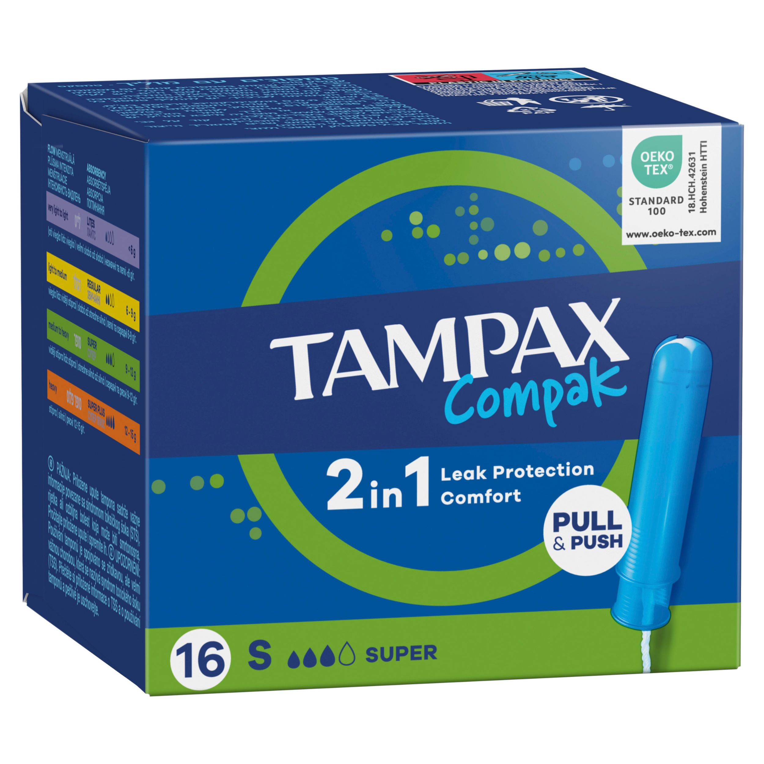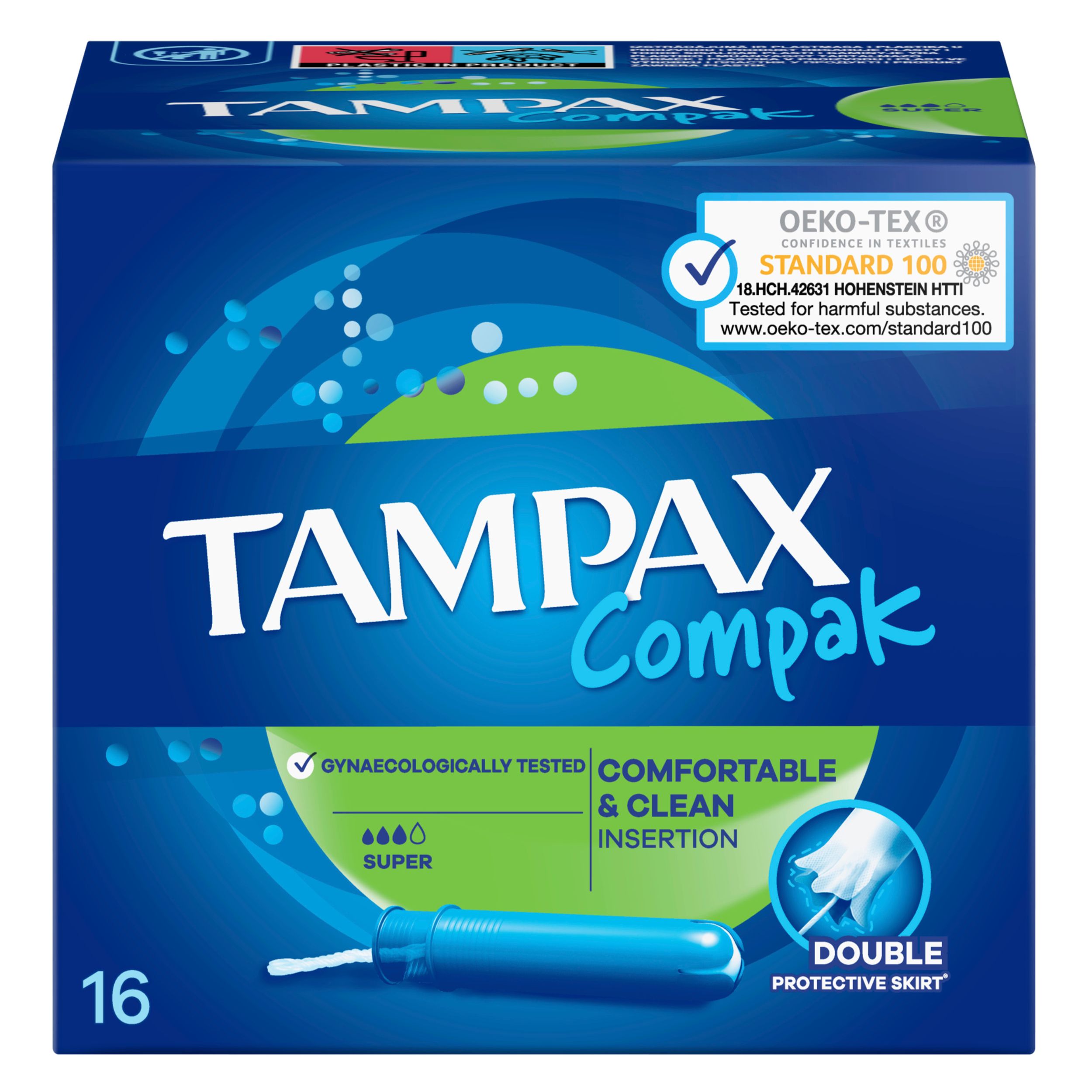 Tamponi Tampax Compak ginekološki su testirani. Također su nezavisno testirani na prisutnost štetnih tvari, prema sustavu Oeko-Tex Standard 100.