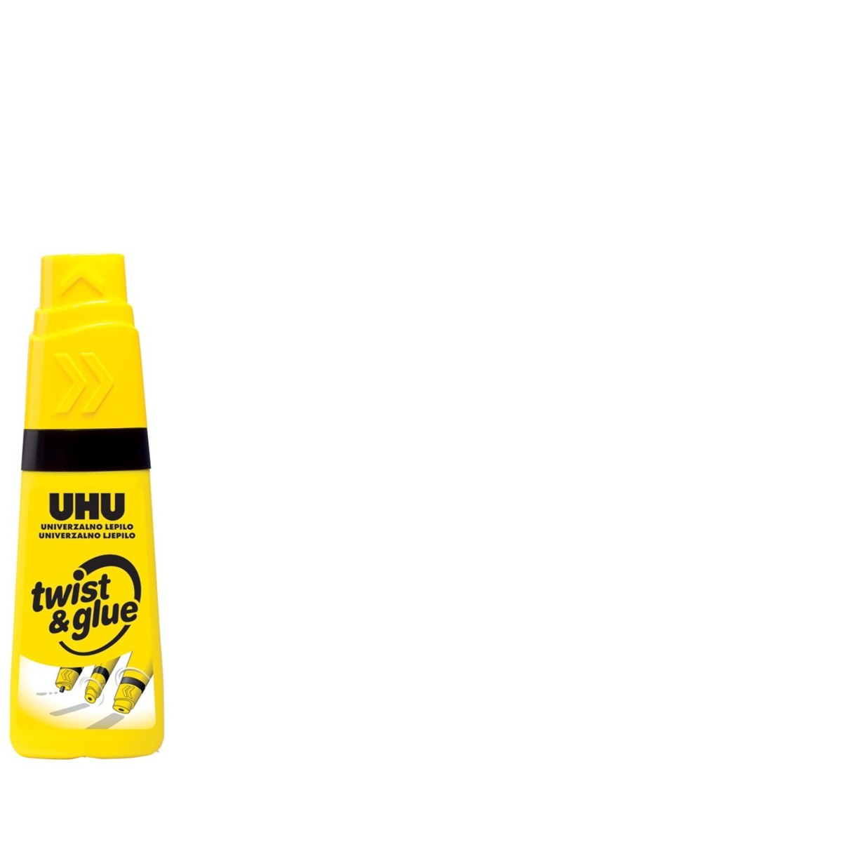 UHU Twist & Glue, provjereno univerzalno tekuće ljepilo u mekanoj, praktičnoj bočici s jedinstvenim rotirajućim aplikatorom u tri položaja za točkasto lijepljenje te za lijepljenje linija i površina. Idealan za razne upotrebe kod kuće, u školi i uredu, za izradu rukotvorina, modeliranje itd.