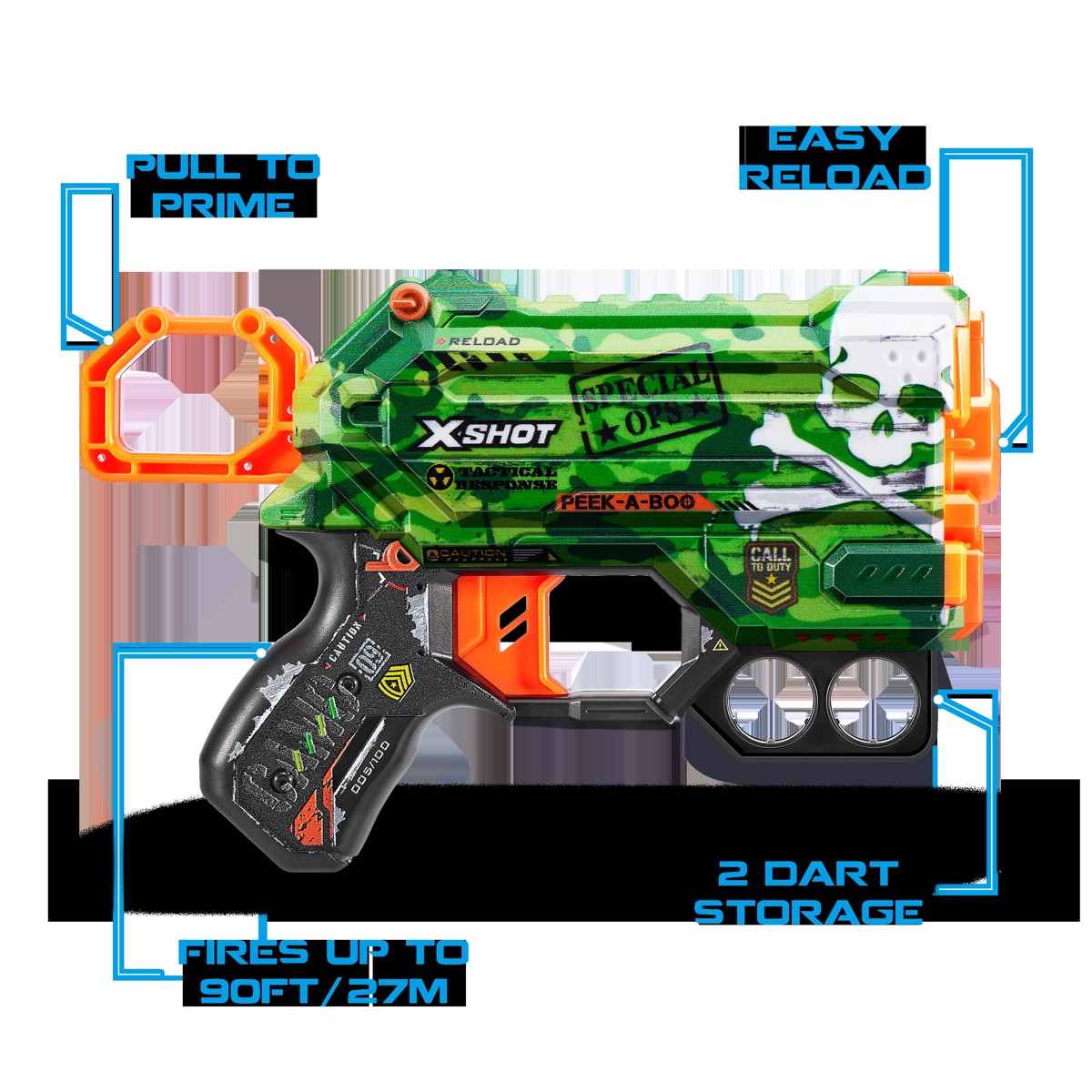 Snaga pucanja: X-Shot Skins Menace je malen, ali moćan, ispucava metke na udaljenosti do 27 m!