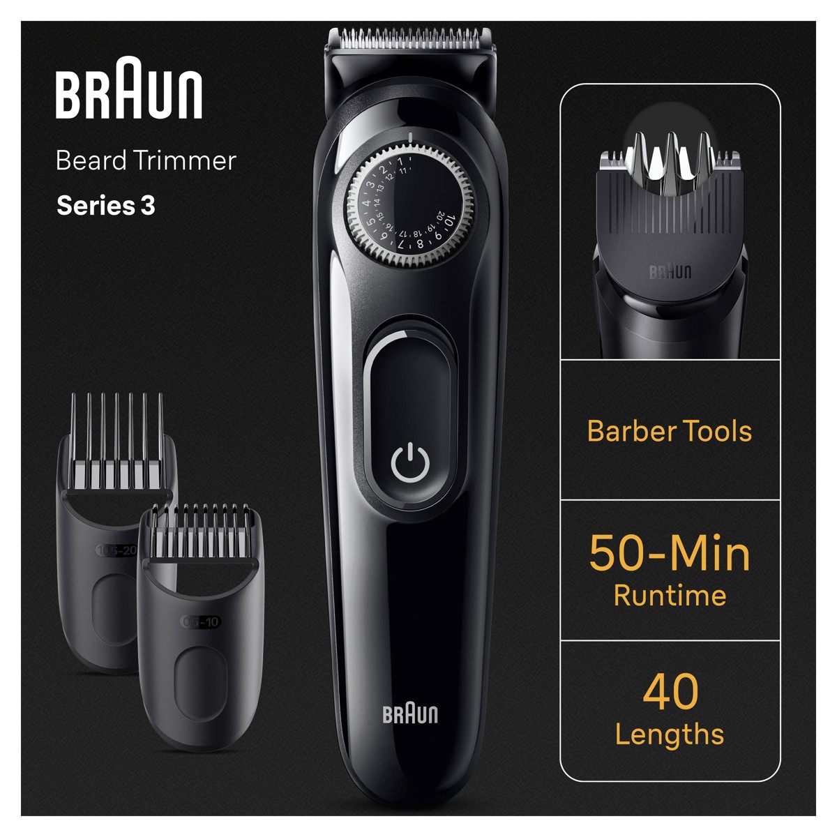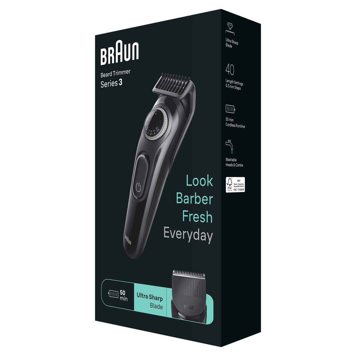 Izgledajte kao da ste upravo došli od brijača bez da izađete iz kuće uz Braunov trimer za bradu Series 3. Precizan je pri svakom potezu s izuzetno oštrim oštricama koje osiguravaju ravnomjerno podrezivanje najrazličitijih brada i kotačićem za precizno podešavanje na 40 postavki duljine.