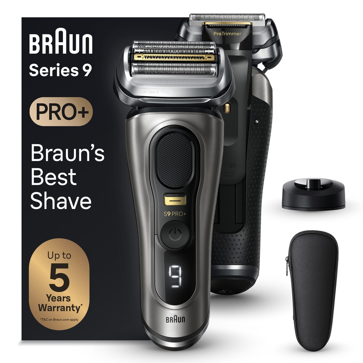 Brijaći aparat Series 9 PRO+ redefinira brijanje kako bi vam pružio vrhunsku temeljitost i ugodnost za kožu. S 5 savršeno usklađenih brijaćih elemenata, uključujući oštricu ProLift, Series 9 PRO+ pruža učinkovito i nježno brijanje pri svakom potezu bez obzira je li u pitanju 1, 3 ili 7-dnevna brada.